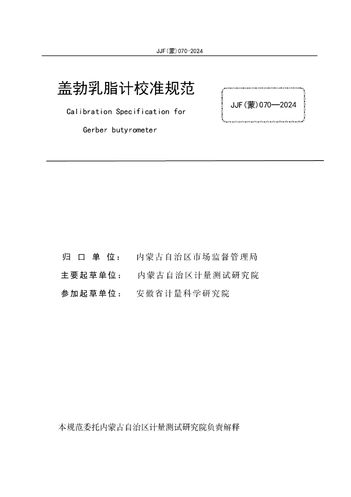 JJF(蒙)070-2024 盖勃乳脂计校准规范