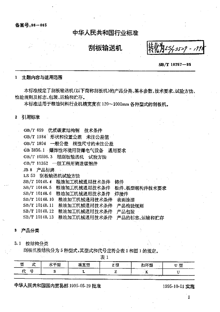 LS/T 3529-1995 刮板输送机