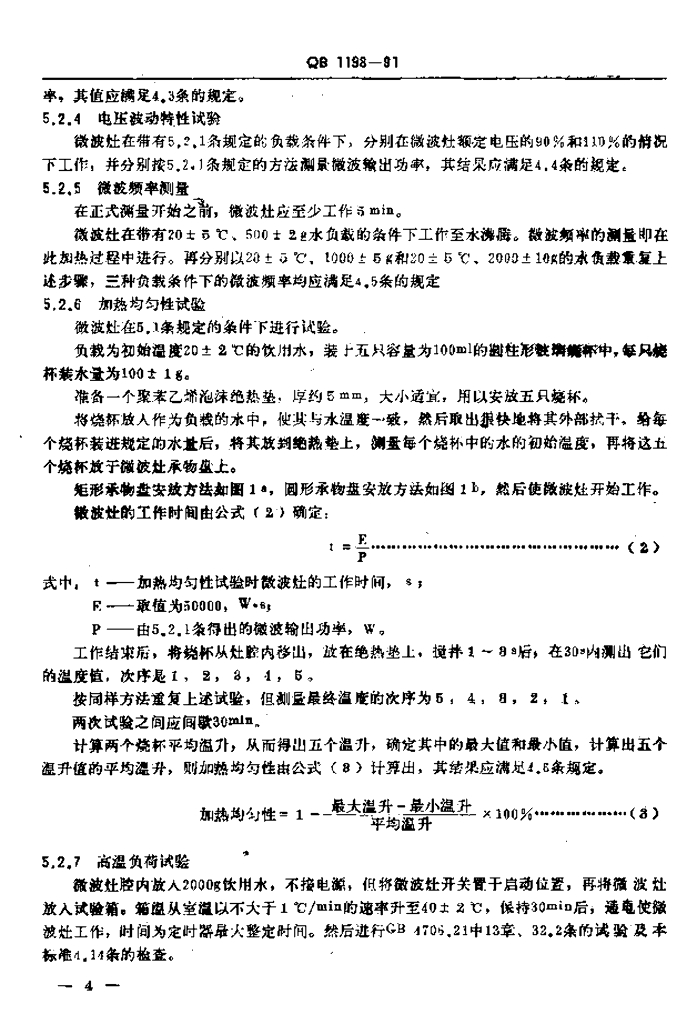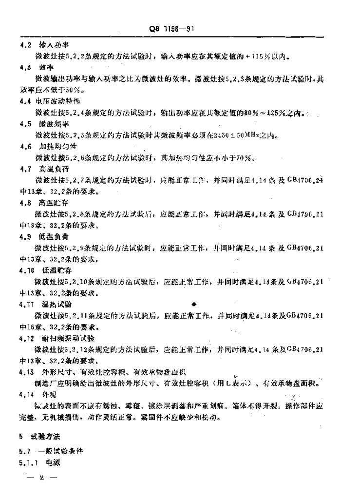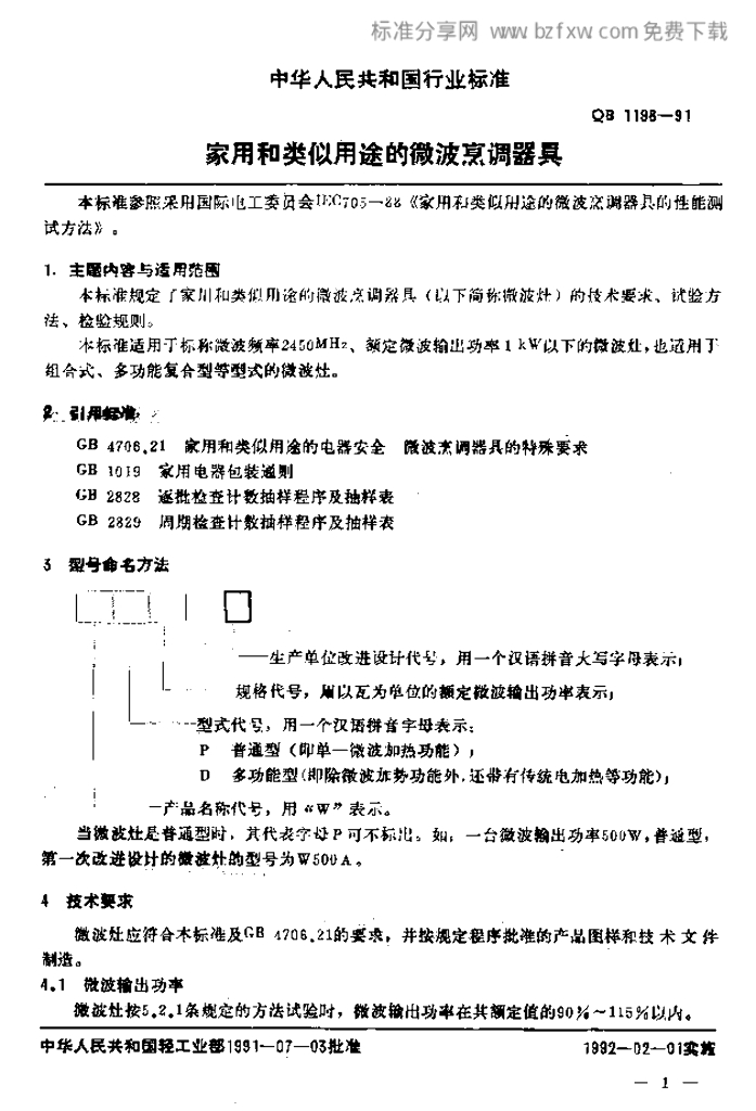 QB 1198-1991 家用和类似用途的微波烹调器具