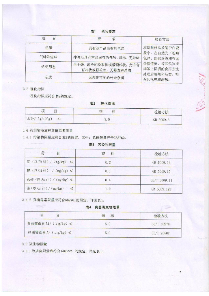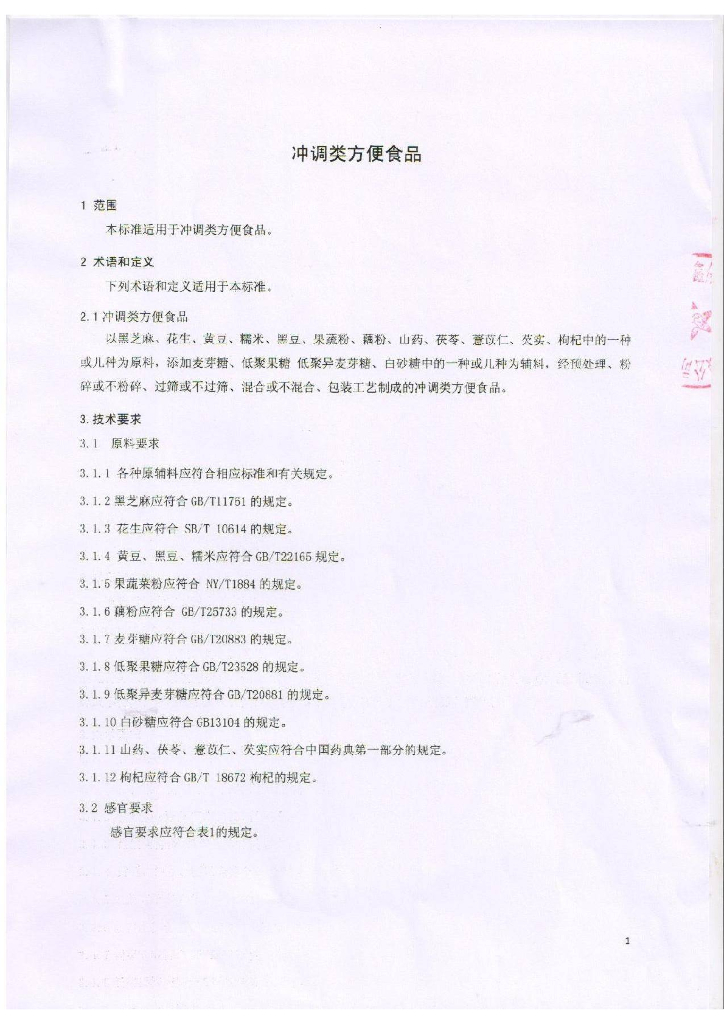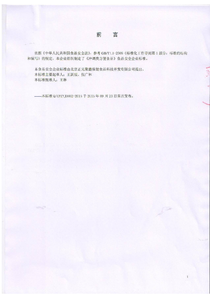 Q/CPZYJ 0002-2015 北京正元聚鑫保健食品科技开发有限公司 冲调类方便食品