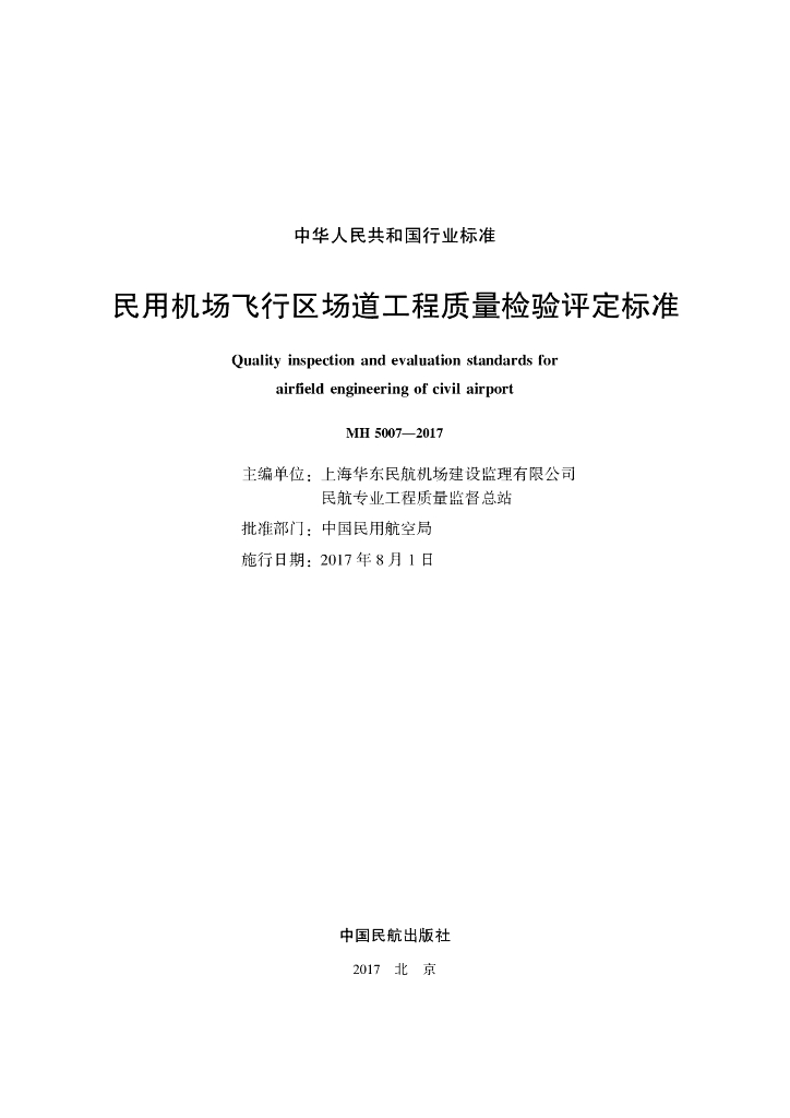 MH 5007-2017 民用机场飞行区场道工程质量检验评定标准