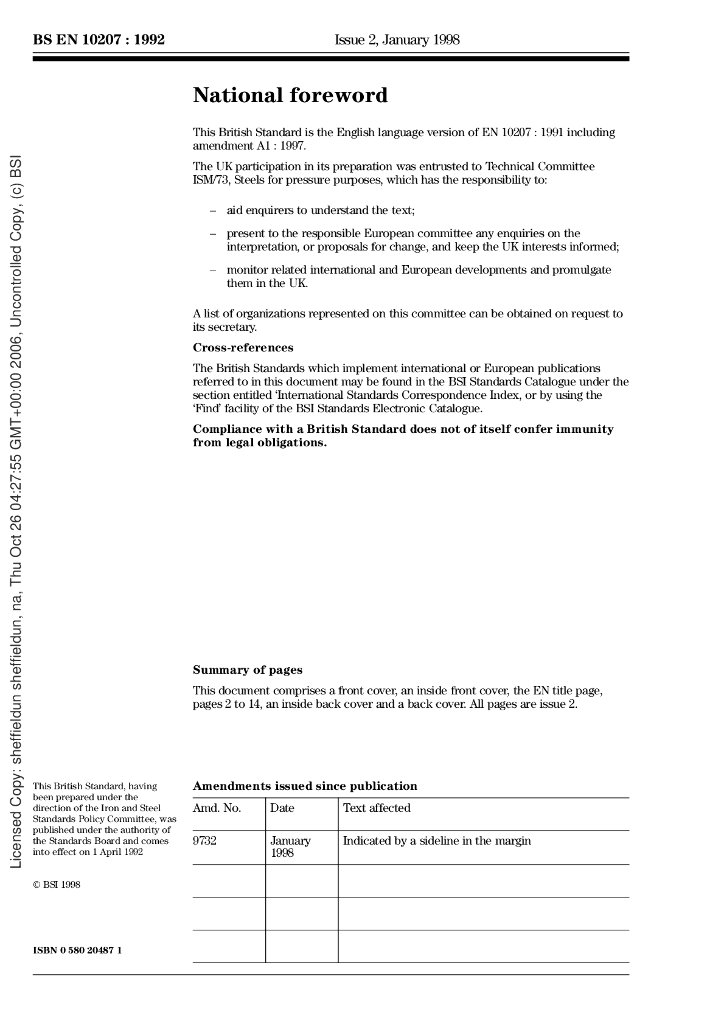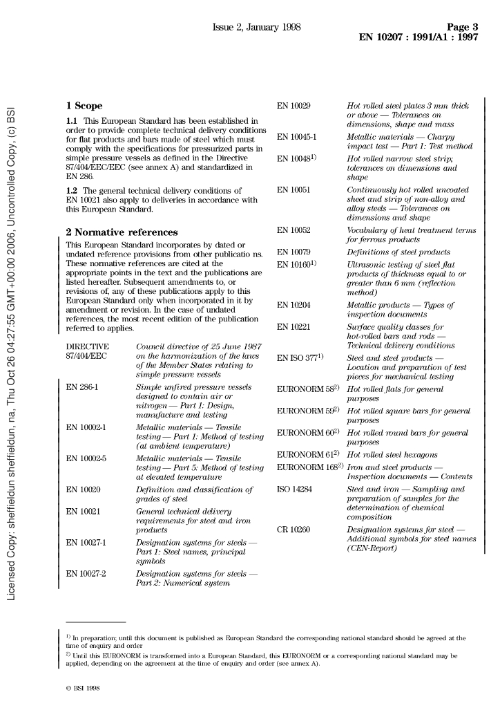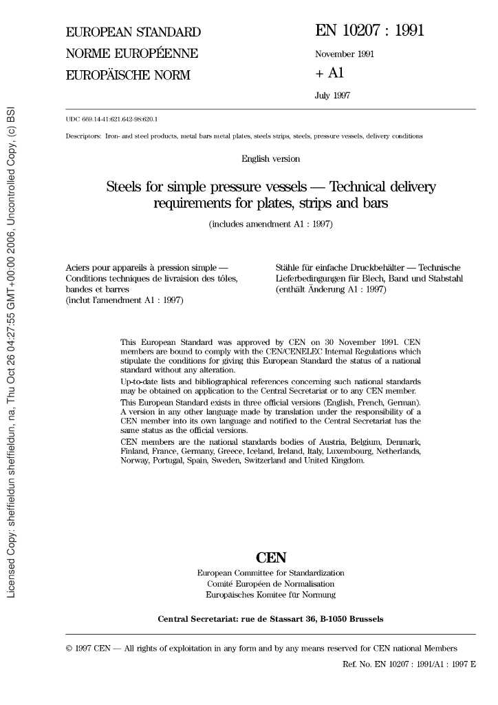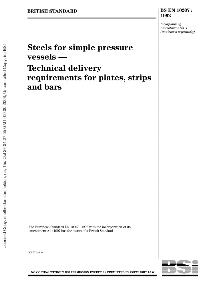 BS EN 10207-1992 Steels for simple pressure vessels. Technical delivery requirements for plates, str