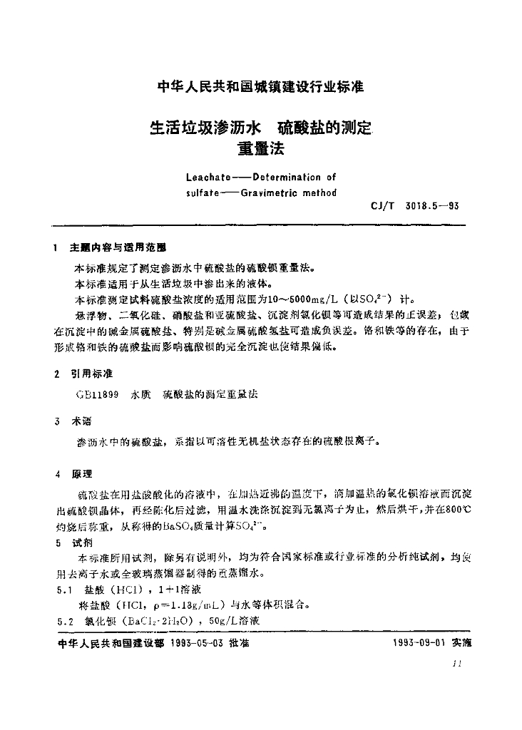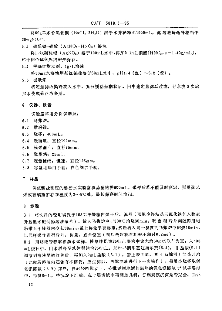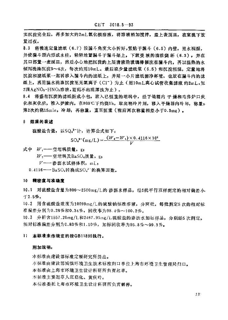 CJ/T 3018.5-1993 生活垃圾渗沥水 硫酸盐的测定 重量法