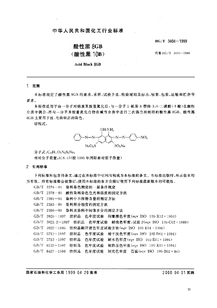 HG/T 3404-1999 酸性黑8GB(酸性黑10B)