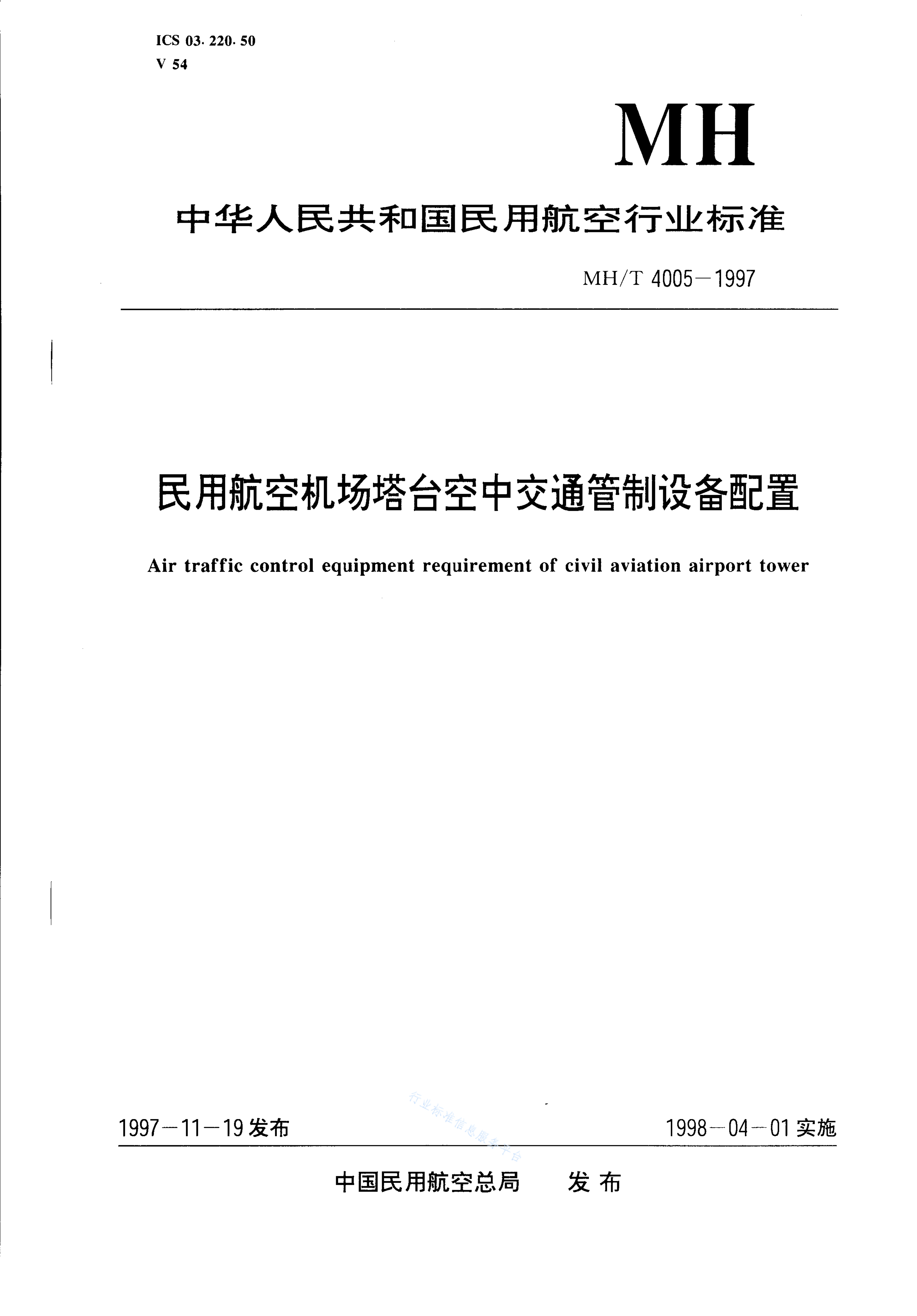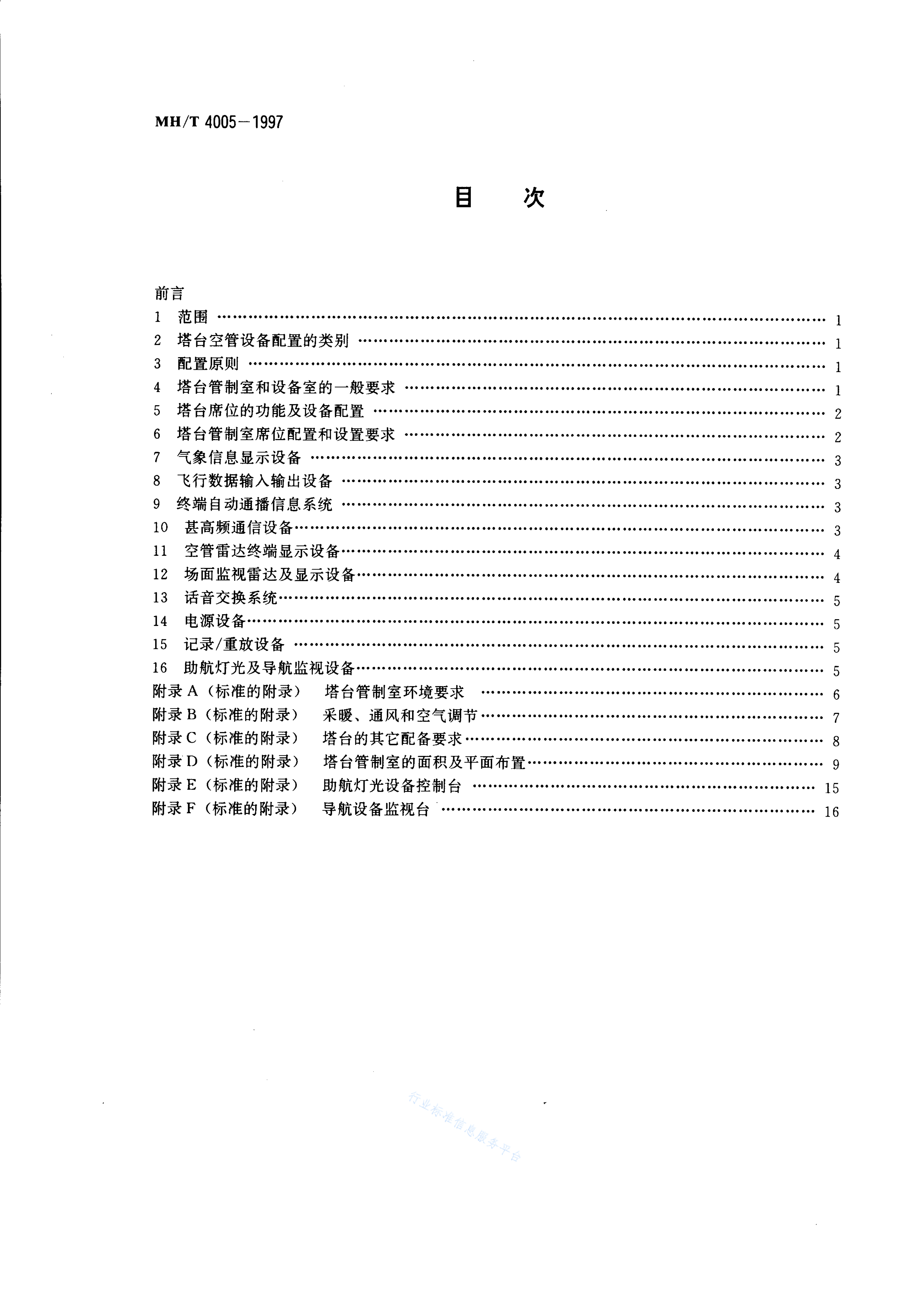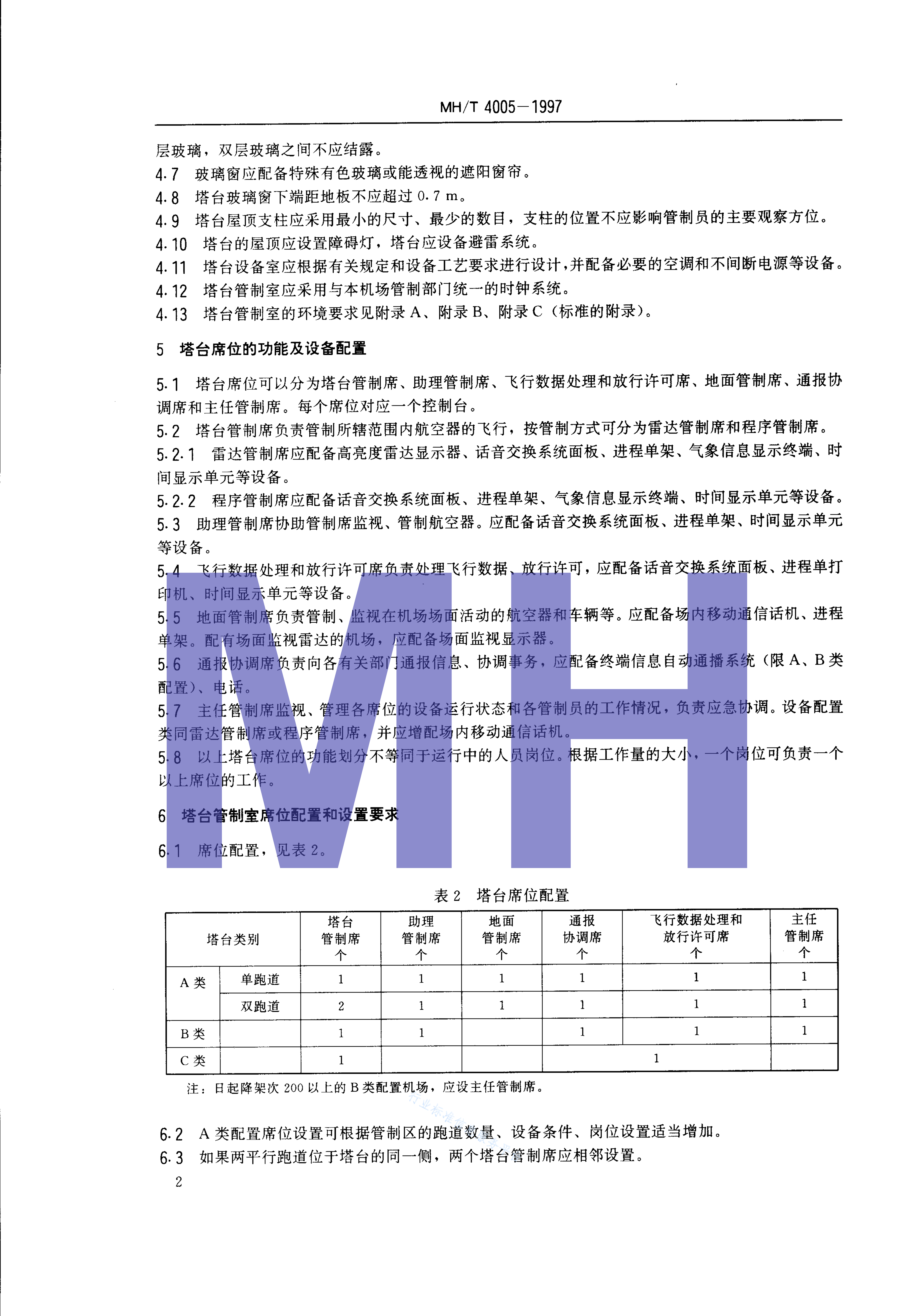 MH/T 4005-1997 民用航空机场塔台空中交通管制设备配置