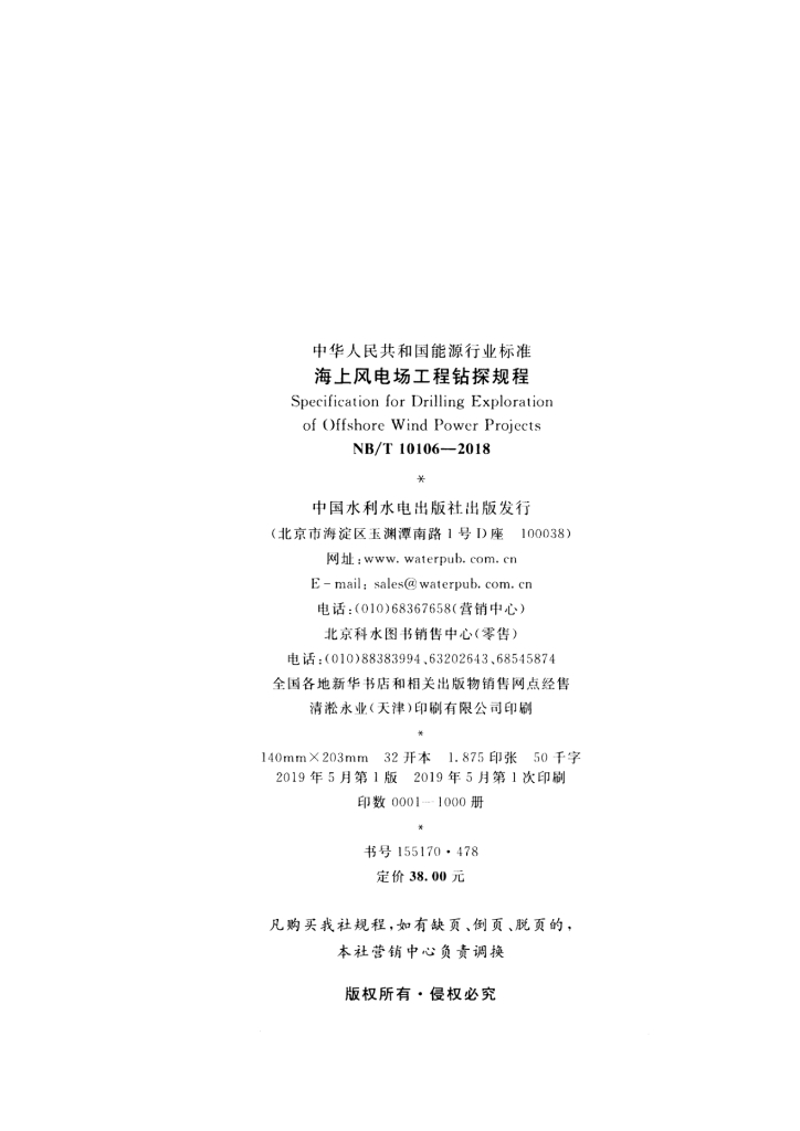 NB/T 10106-2018 海上风电场工程钻探规程