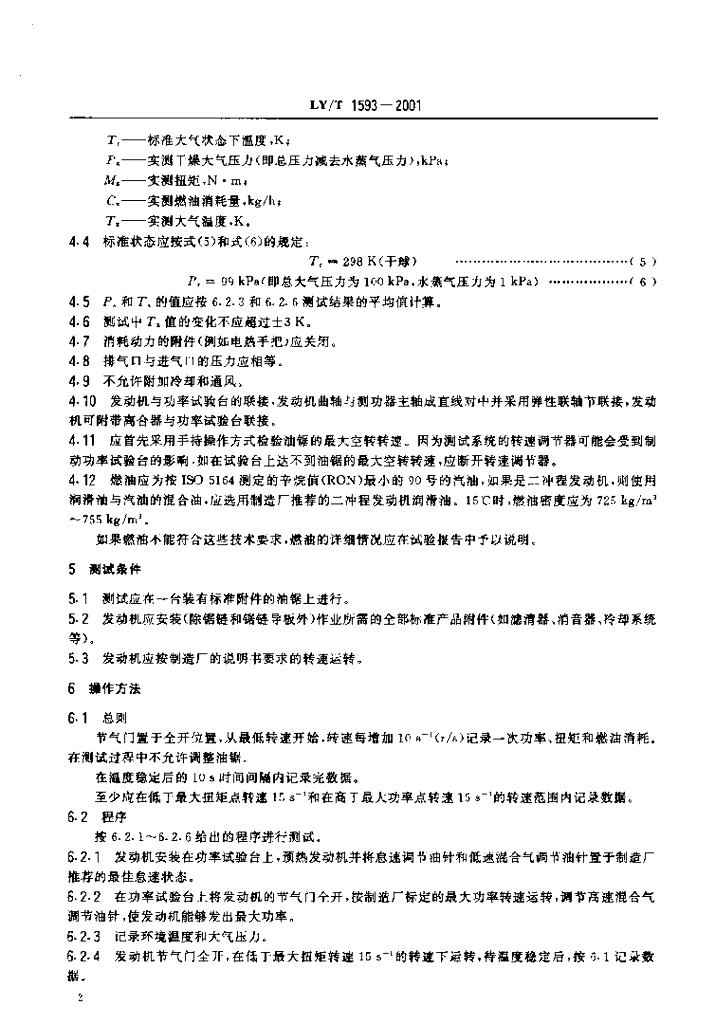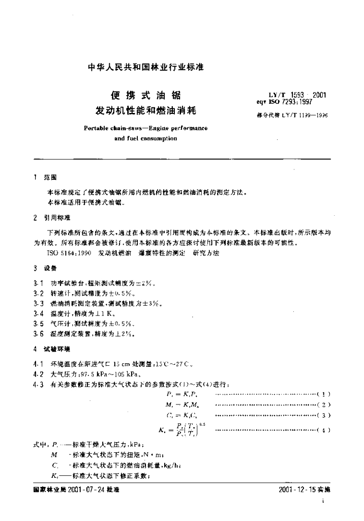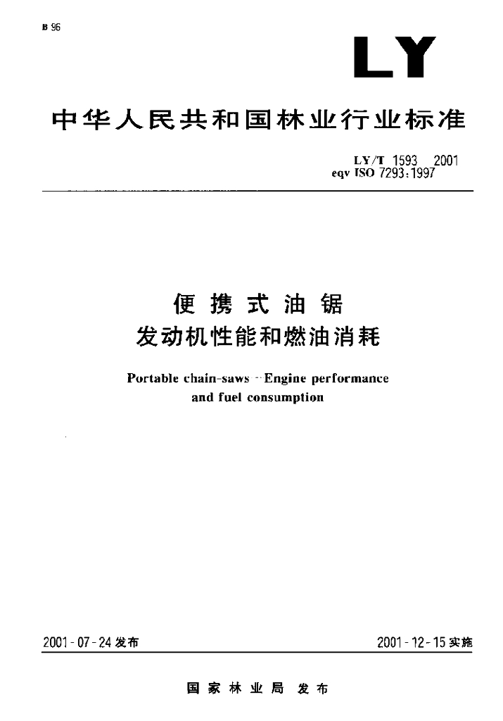 LY/T 1593-2001 便携式油锯发动机性能和燃油消耗