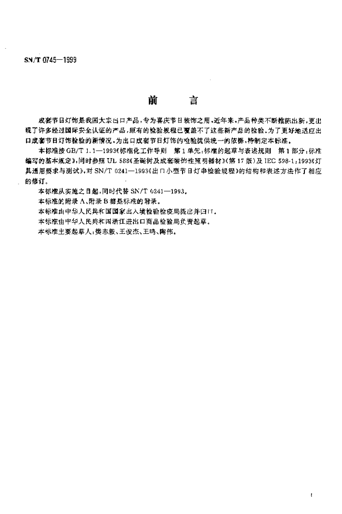 SN/T 0745-1999 出口成套节日灯饰检验规程