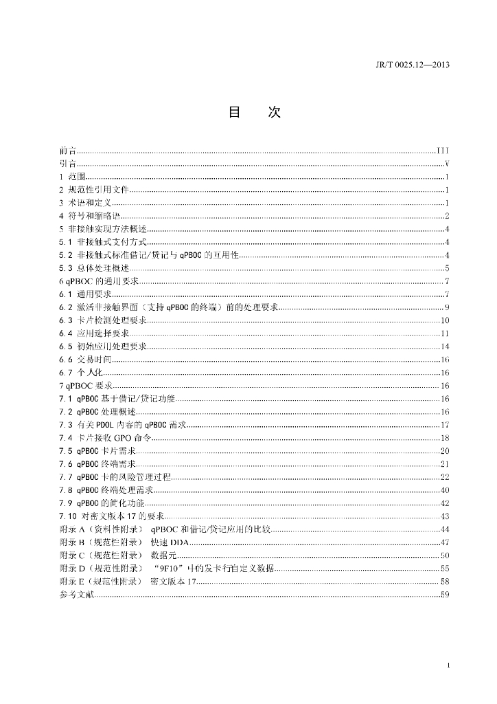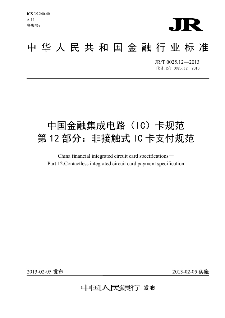 JR/T 0025.12-2013 中国金融集成电路(IC)卡规范 第12部分:非接触式IC卡支付规范