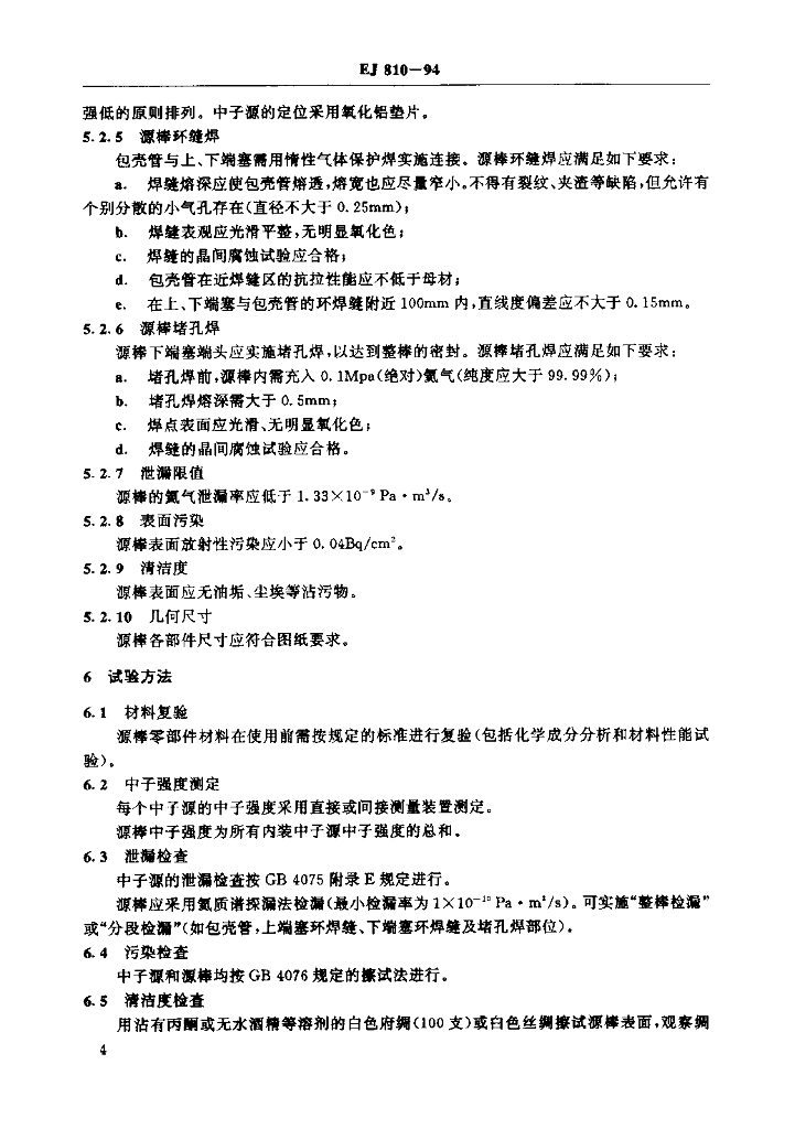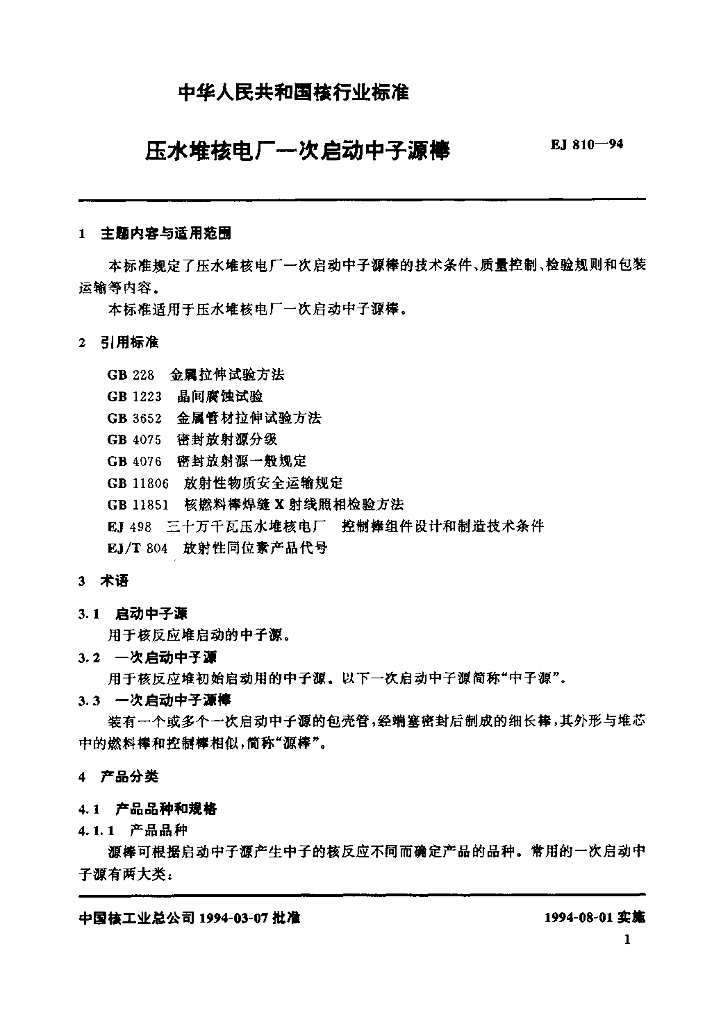 EJ 810-1994 压水堆核电厂一次启动中子源棒