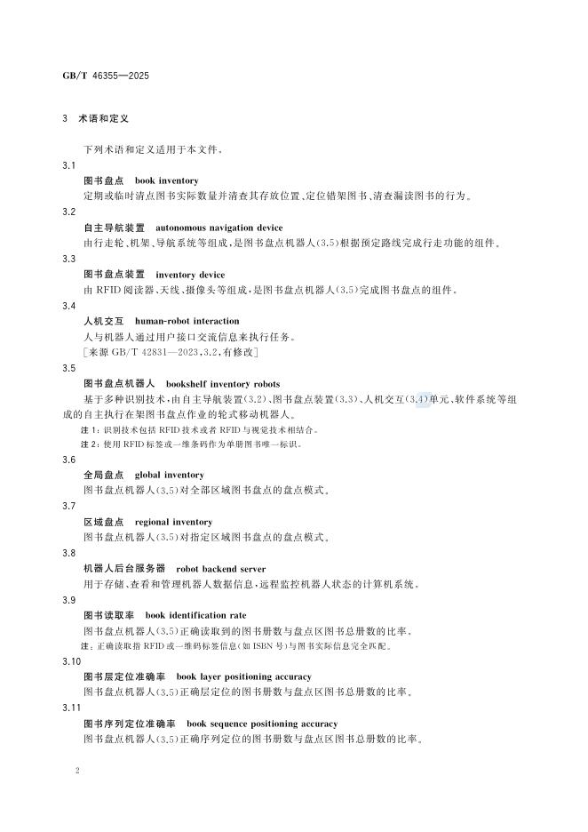 GB/T 46355-2025 图书盘点机器人通用技术条件