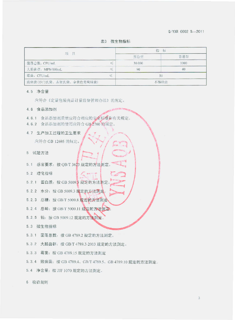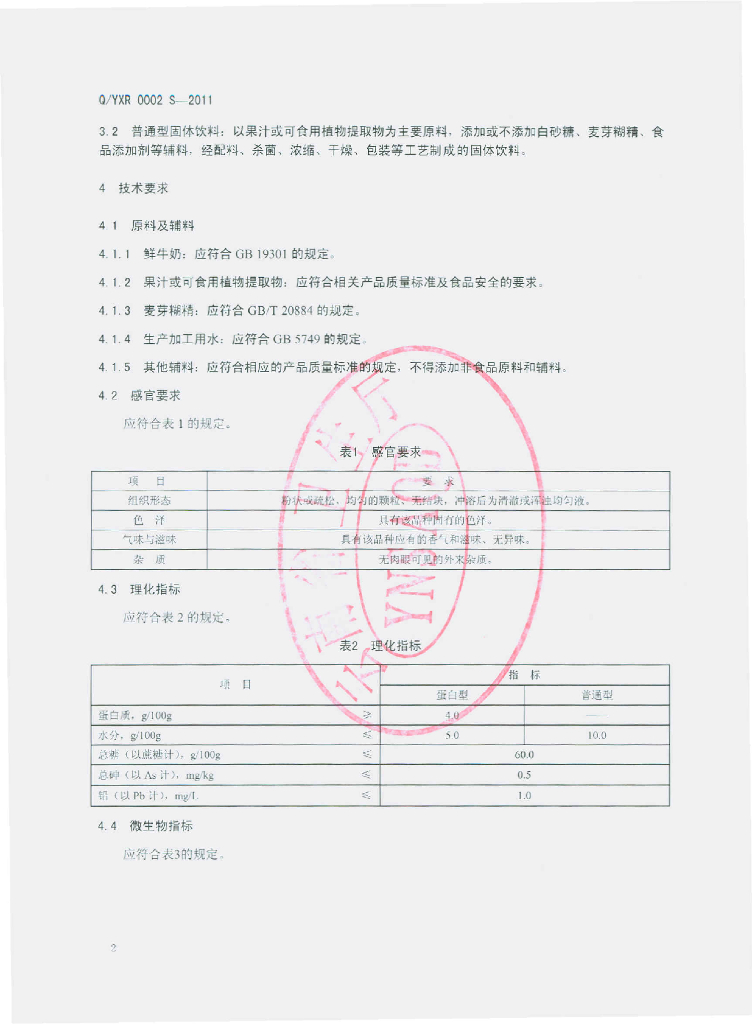 Q/YXR 0002S-2011 固体饮料