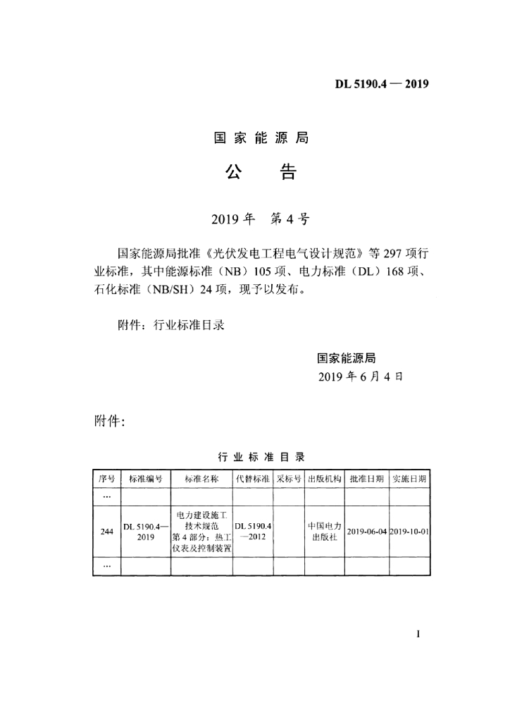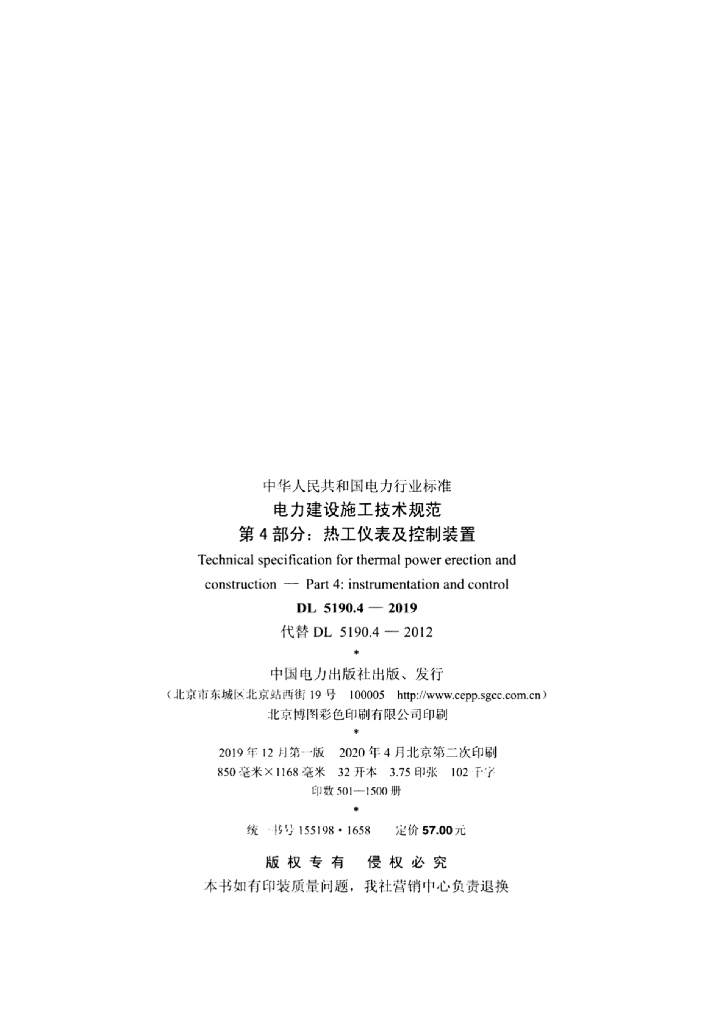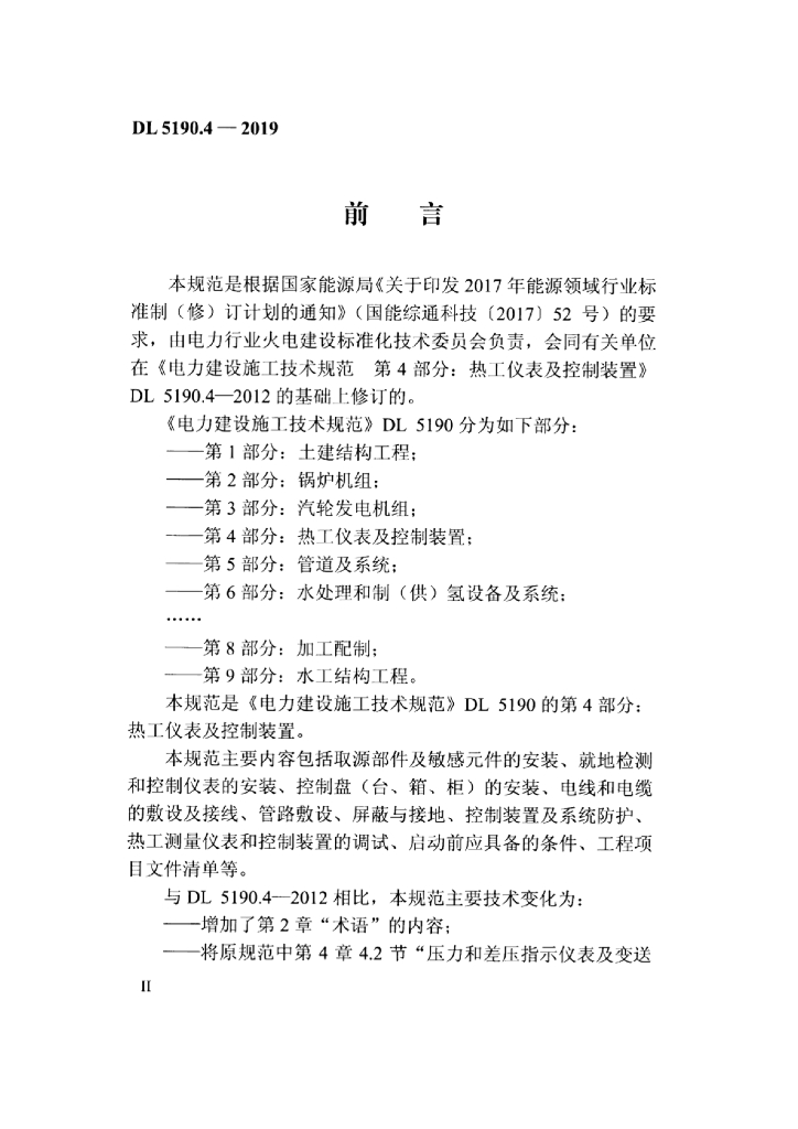 DL 5190.4-2019 电力建设施工技术规范 第4部分:热工仪表及控制装置