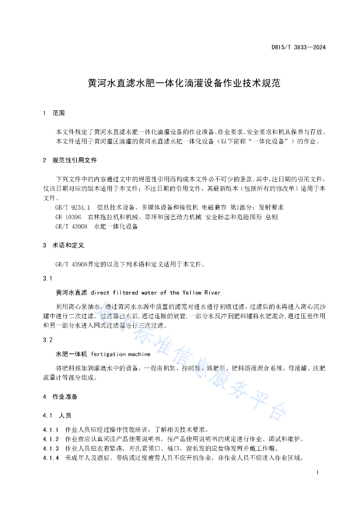 DB15/T 3833-2025 黄河水直滤水肥一体化滴灌设备作业技术规范