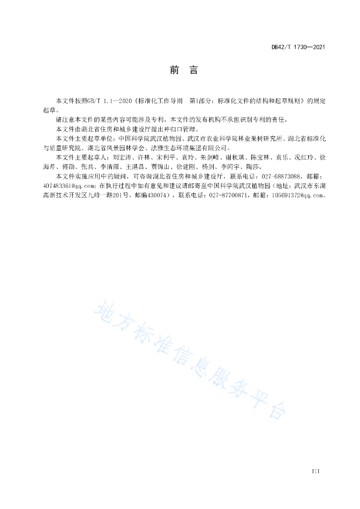 中国科学院武汉植物园、武汉市农业科学院林业果树研究所、湖北省标准化与质量研究院、湖北省风景园林学会、法雅生态环境集团有限公司