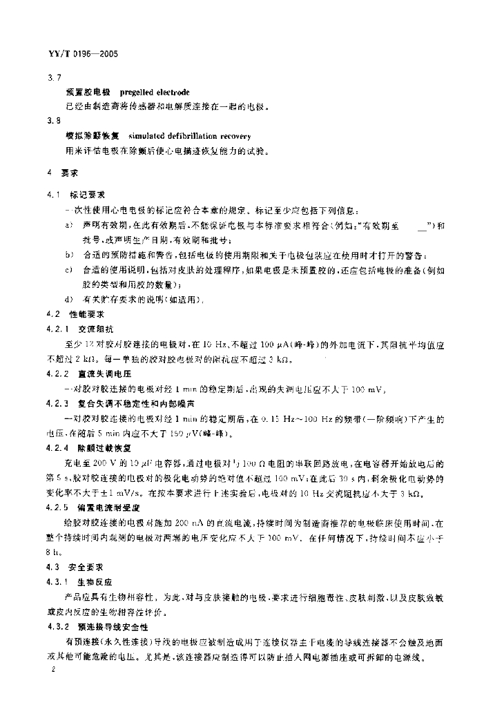 YY/T 0196-2005 一次性使用心电电极