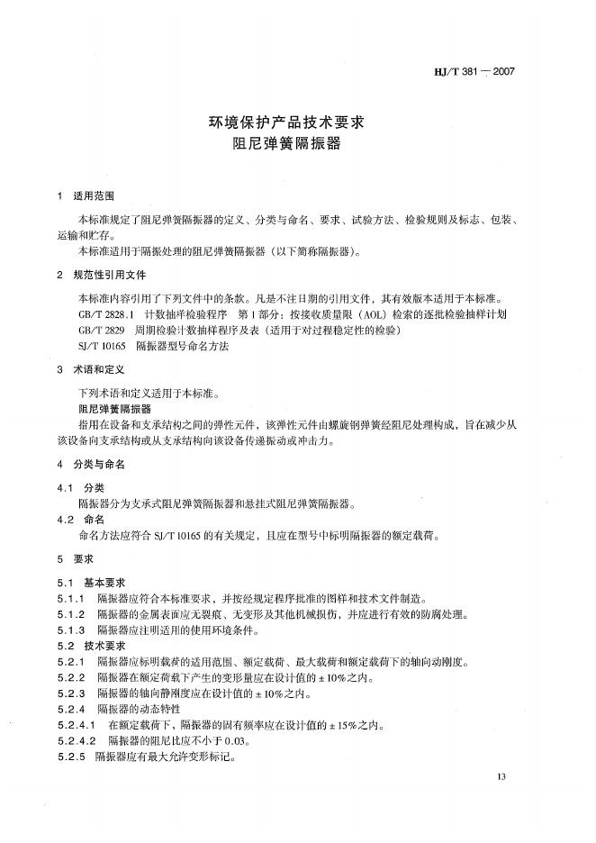 HJ/T 381-2007 环境保护产品技术要求 阻尼弹簧隔振器