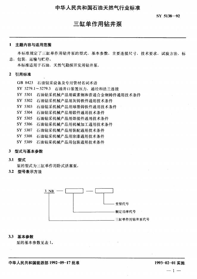 SY 5138-1992 三缸单作用钻井泵