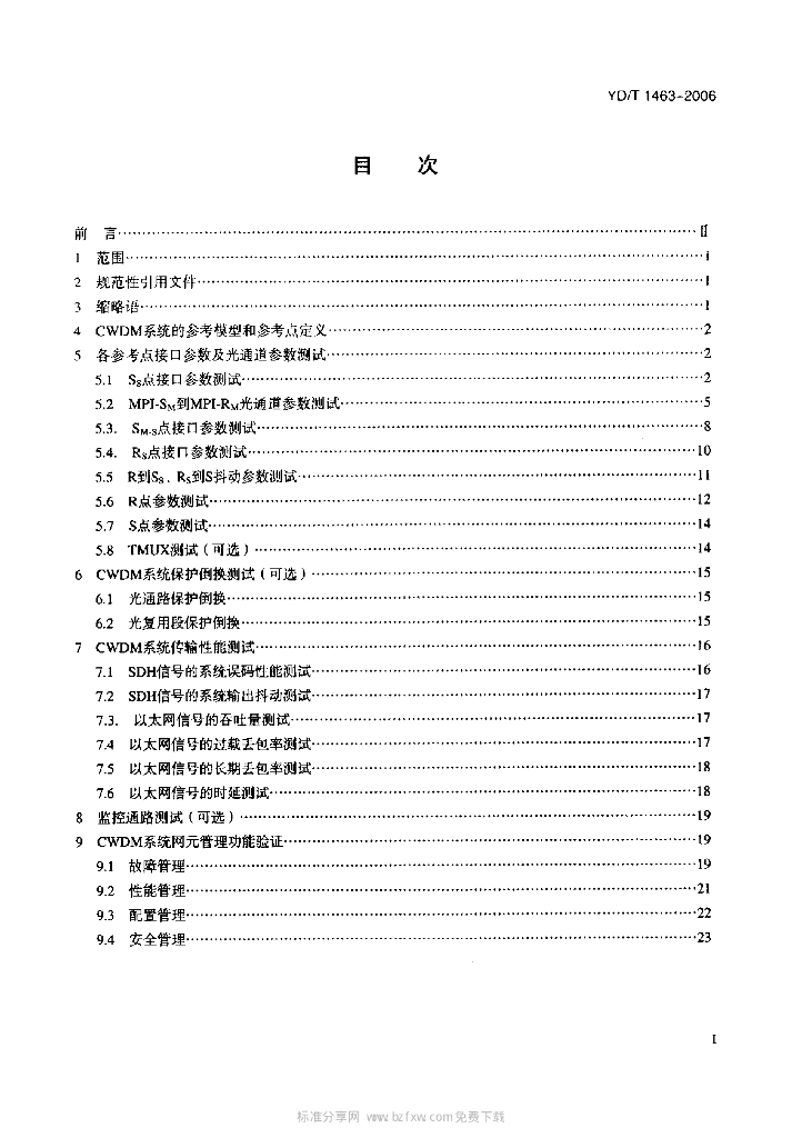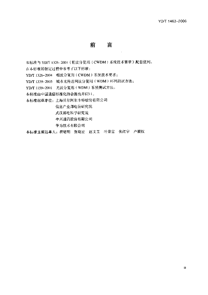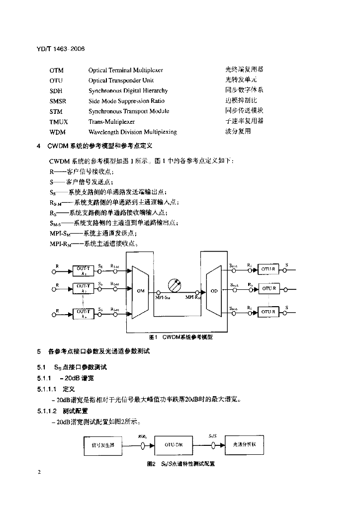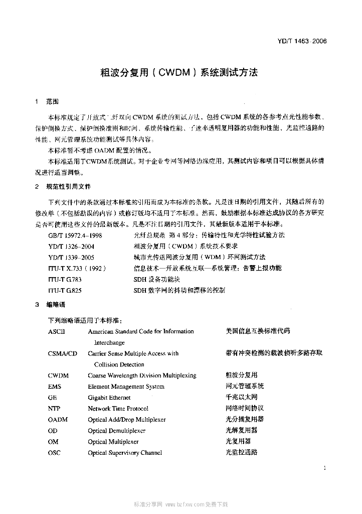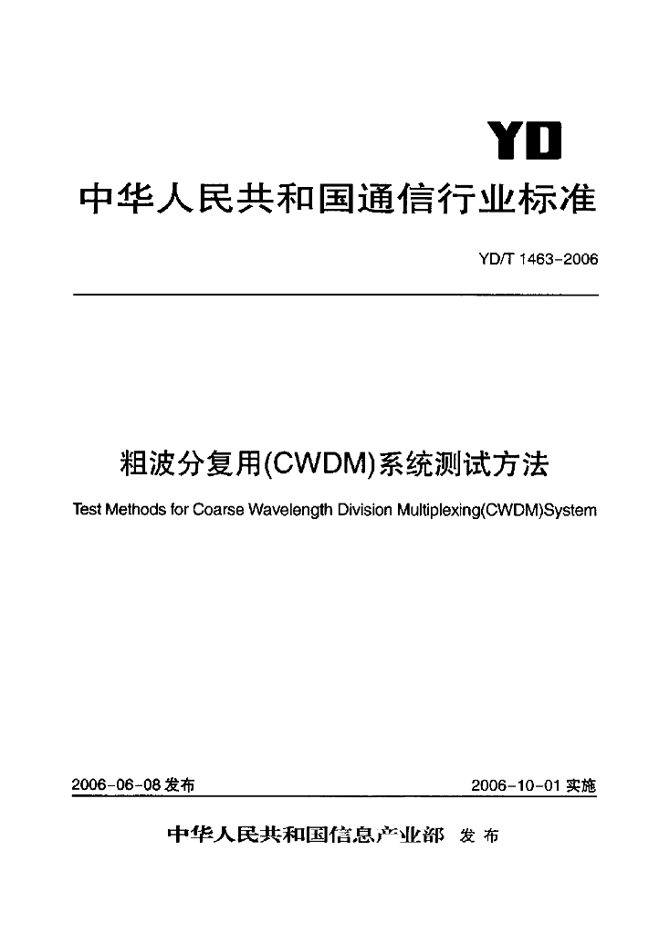 YD/T 1463-2006 粗波分复用(CWDM)系统测试方法
