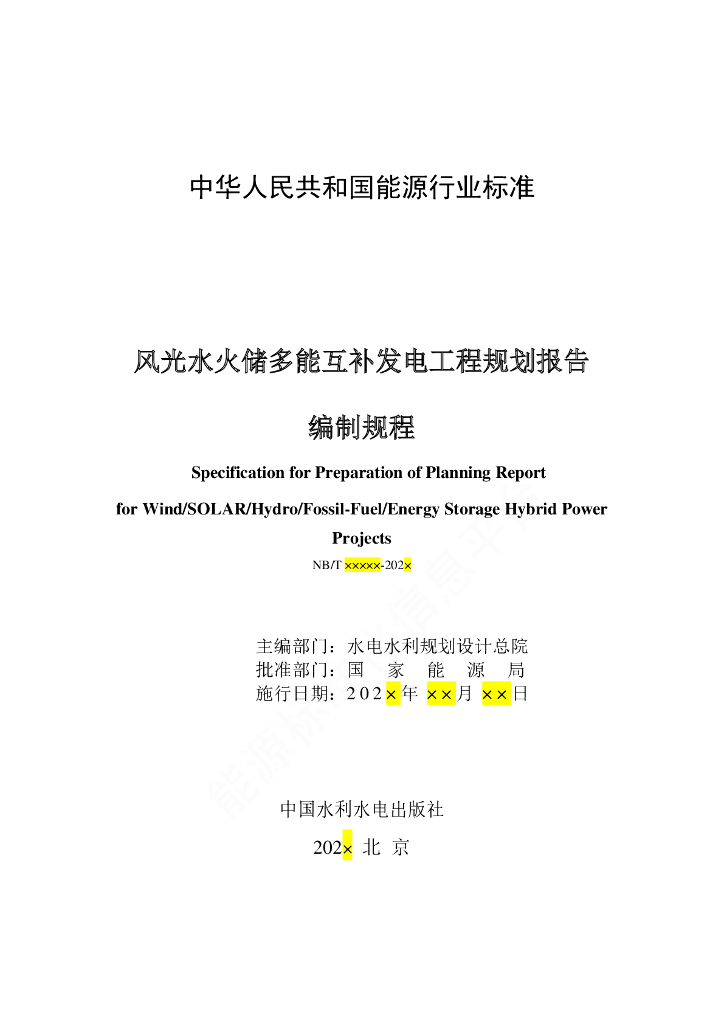 NB/T 11082-2023 风光水火储多能互补发电工程规划报告编制规程