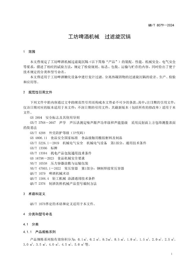 QB/T 8079-2024 工坊啤酒机械 过滤旋沉锅