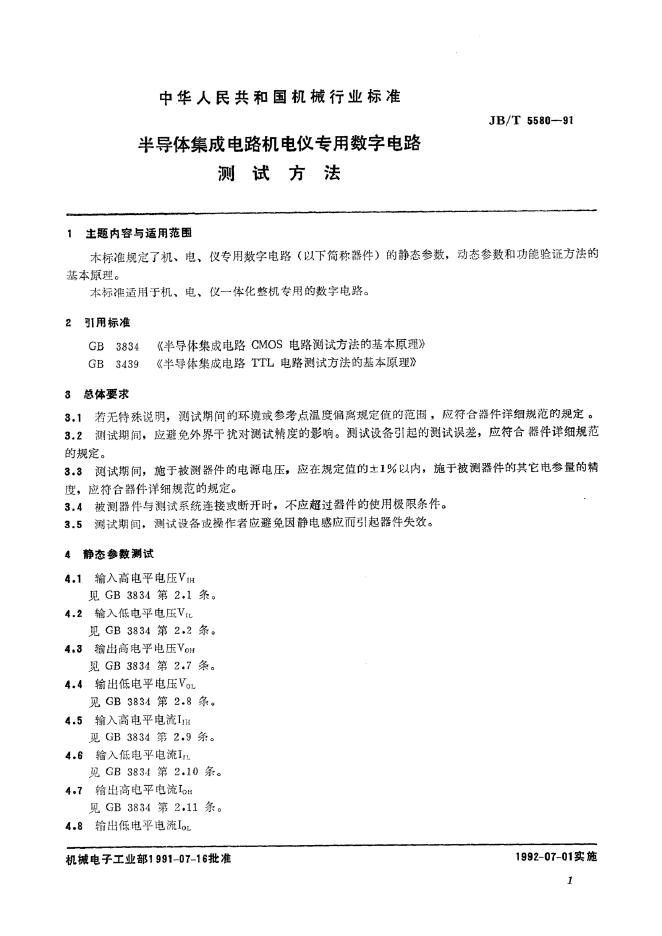 JB/T 5580-1991 半导体集成电路机电仪专用数字电路测试方法