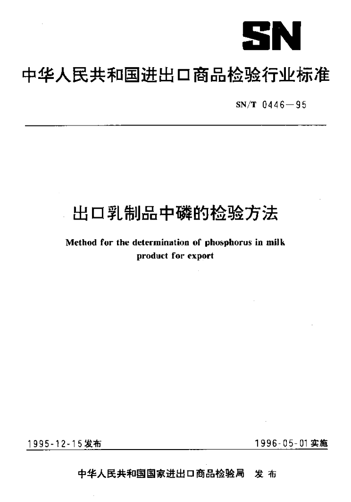 SN/T 0446-1995 出口乳制品中磷的检验方法