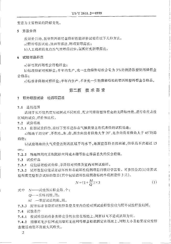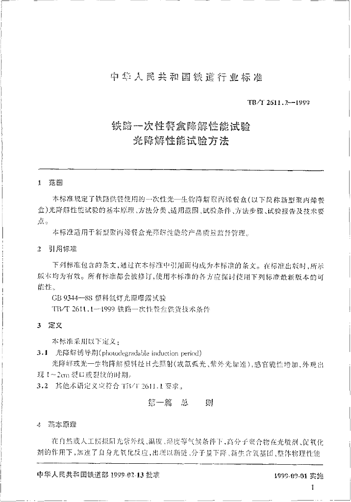 TB/T 2611.2-1999 铁路一次性餐盒降餑性能试验