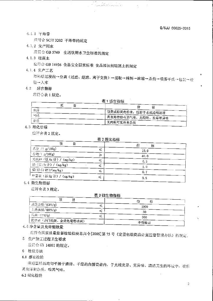 Q/SJJ 0002S-2015 山东洁晶集团股份有限公司 海带浓缩粉