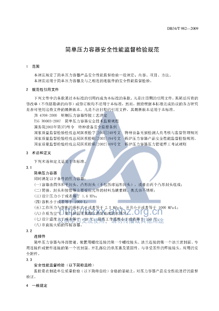 DB34/T 982-2009 简单压力容器安全性能监督检验规范