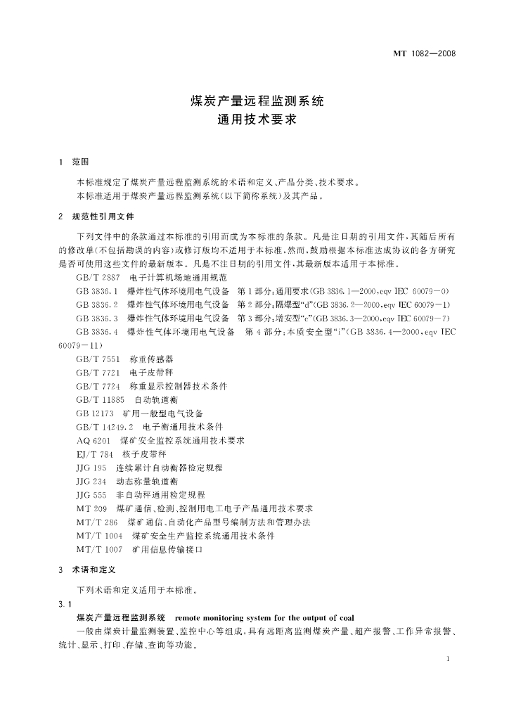 MT 1082-2008 煤炭产量远程监测系统通用技术要求