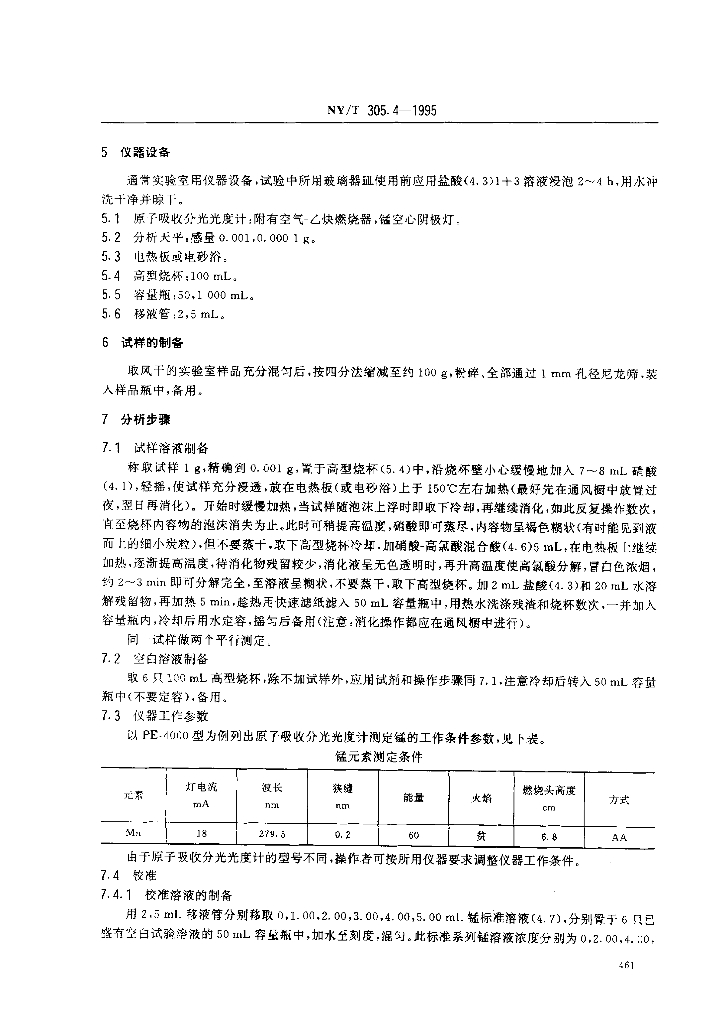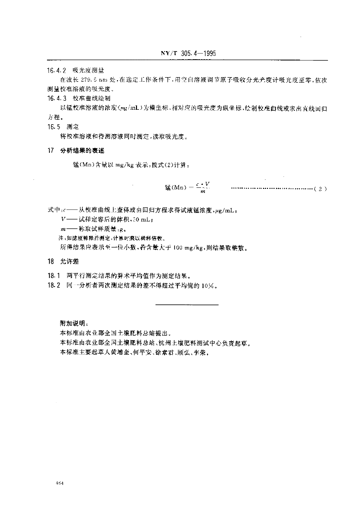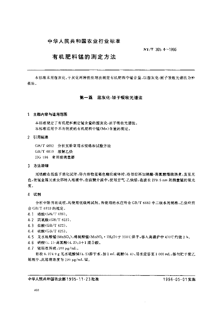 NY/T 305.4-1995 有机肥料锰的测定方法