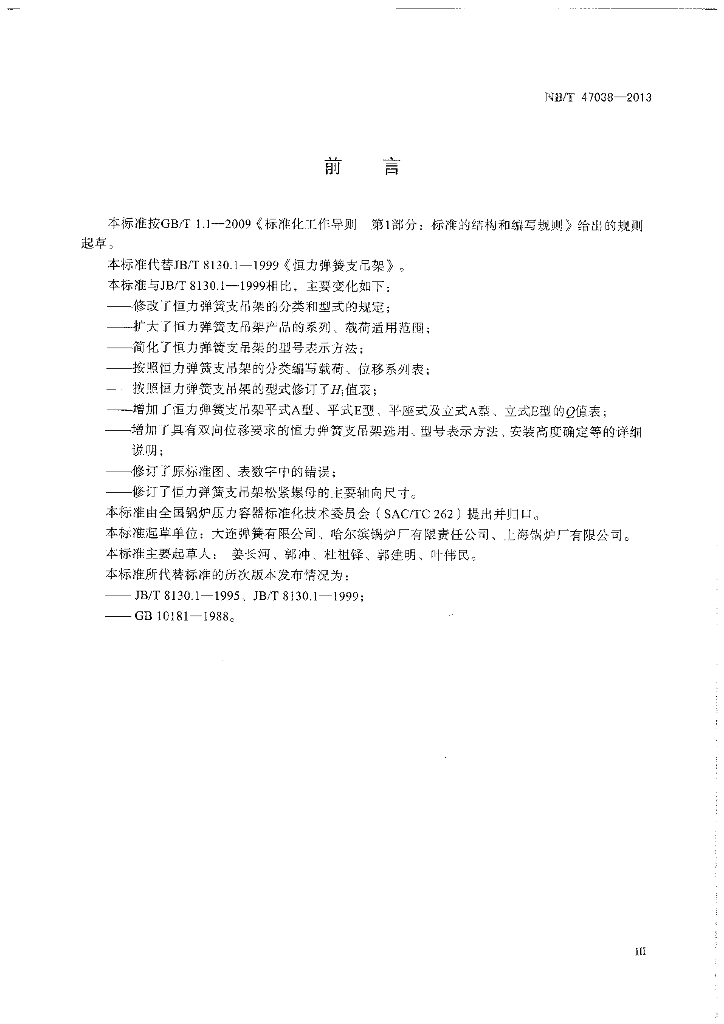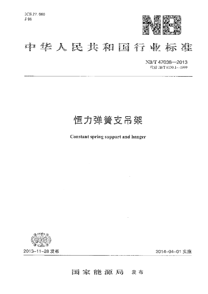NB/T 47038-2013 恒力弹簧支吊架