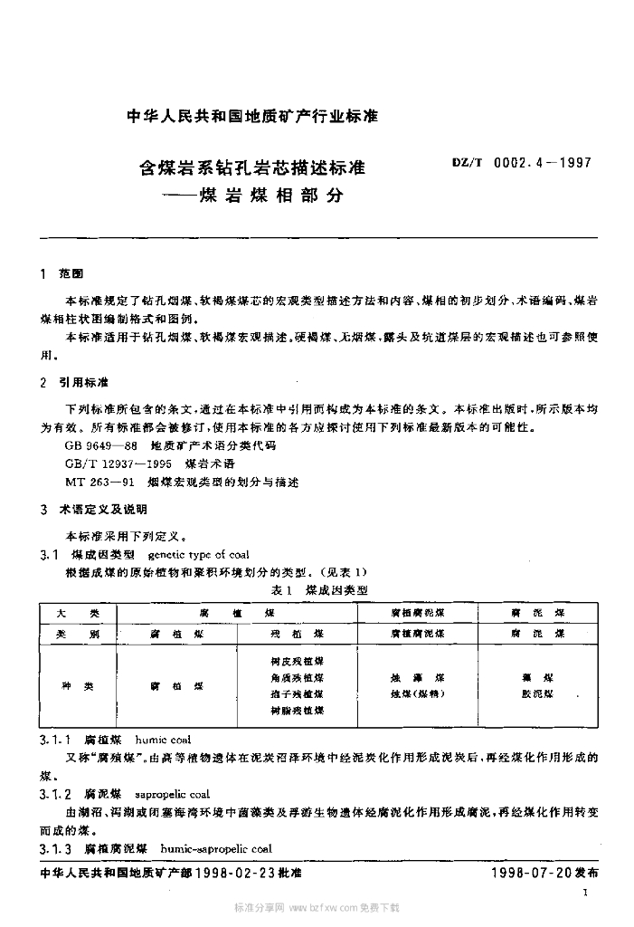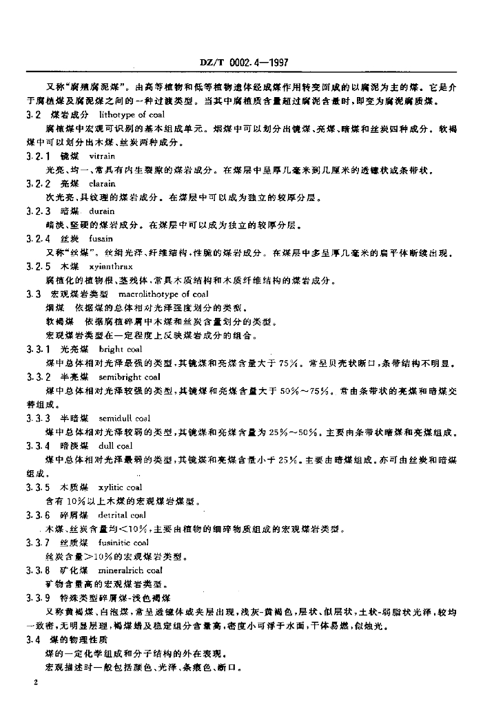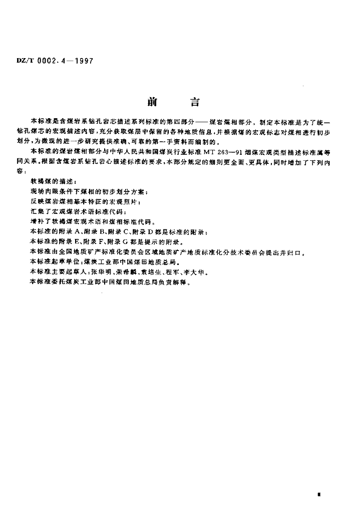 DZ/T 0002.4-1997 含煤岩系钻孔岩芯描述标准——煤岩煤相部分
