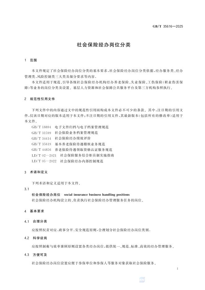 GB/T 35616-2025 社会保险经办岗位分类