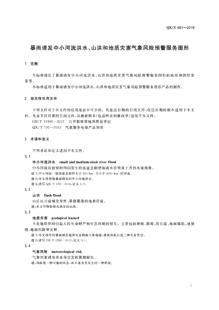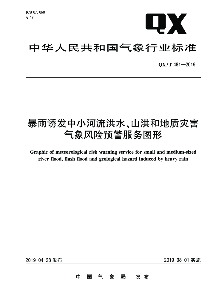 QX/T 481-2019 暴雨诱发中小河流洪水、山洪和地质灾害气象风险预警服务图形