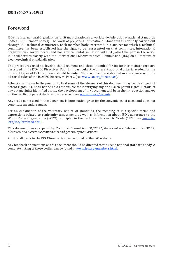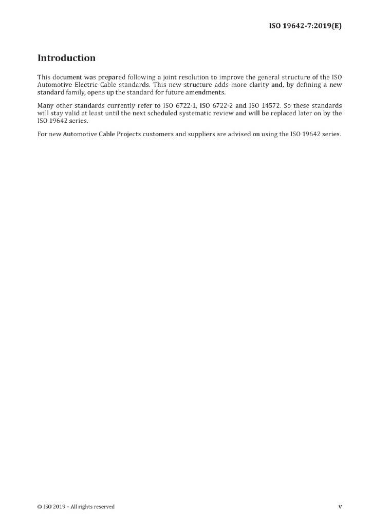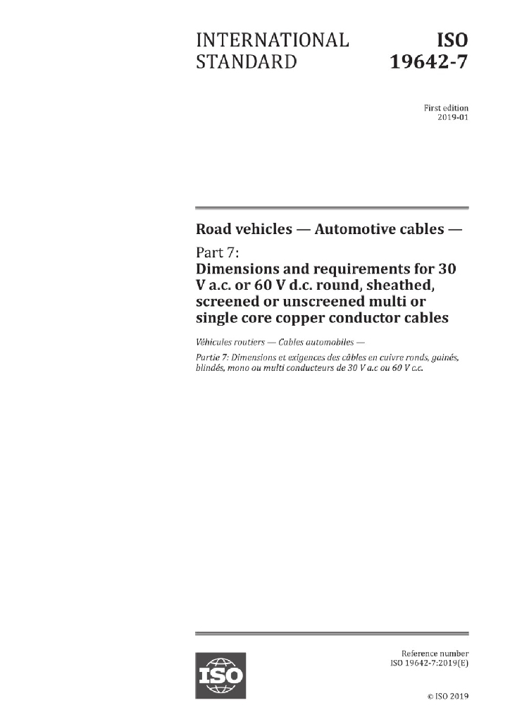 ISO 19642-7:2019 道路车辆 汽车电缆 第7部分:交流30V或直流60V圆形、屏蔽和非屏蔽的多芯或单芯铜导体护套电缆的尺寸和要求