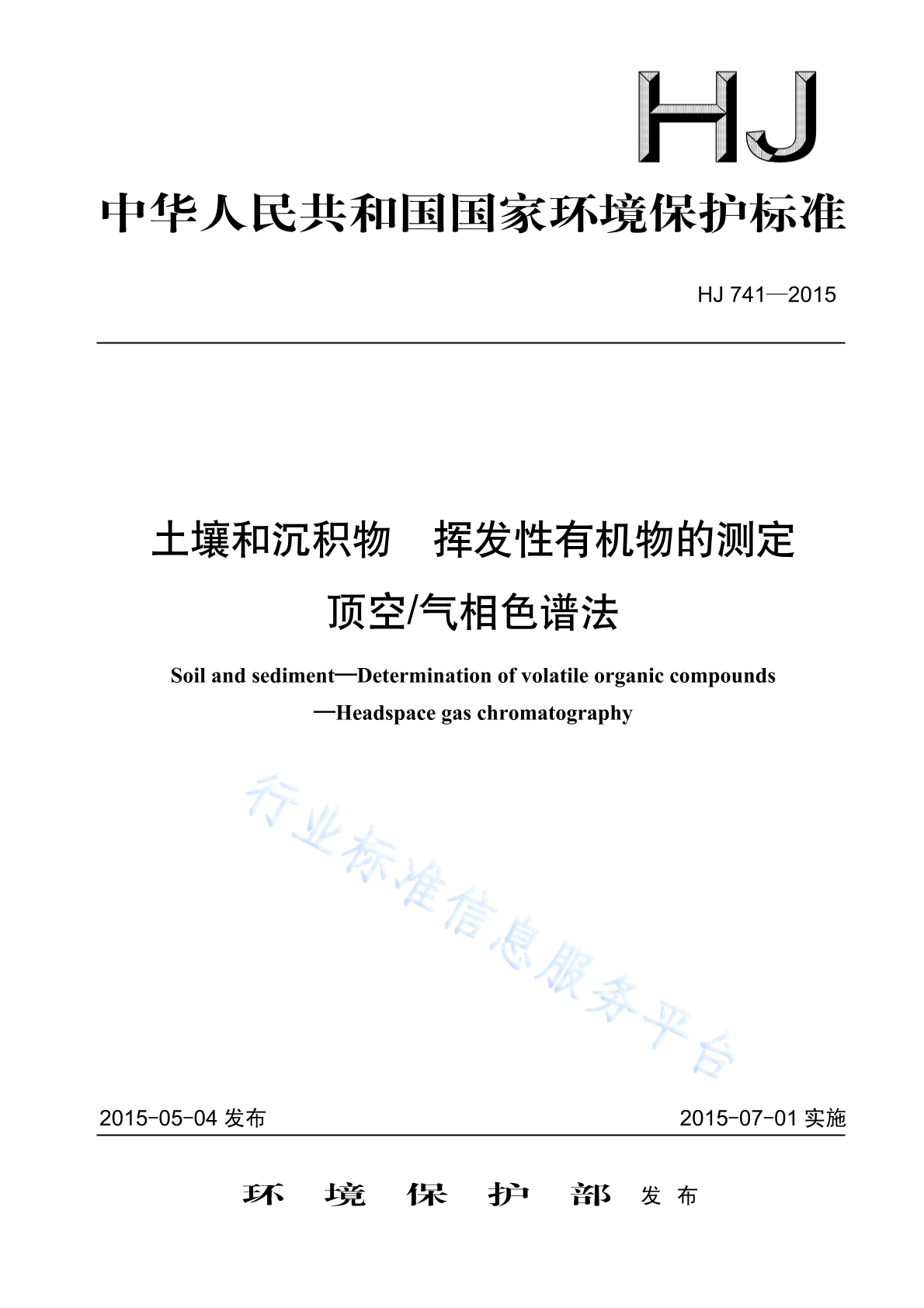 HJ 741-2015 土壤和沉积物 挥发性有机物的测定 顶空气相色谱法