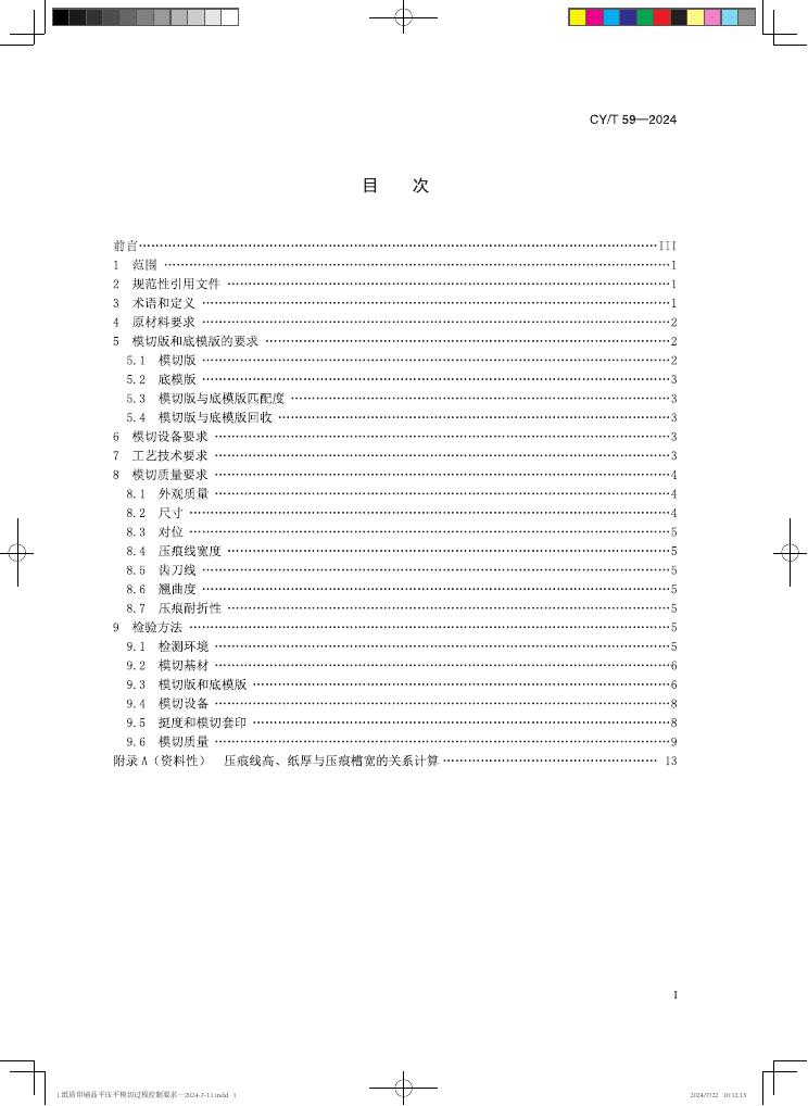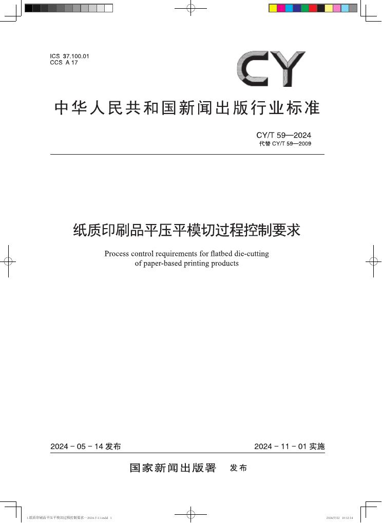 CY/T 59-2024 纸质印刷品平压平模切过程控制要求