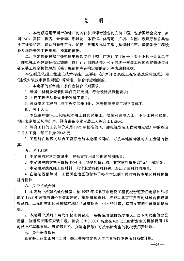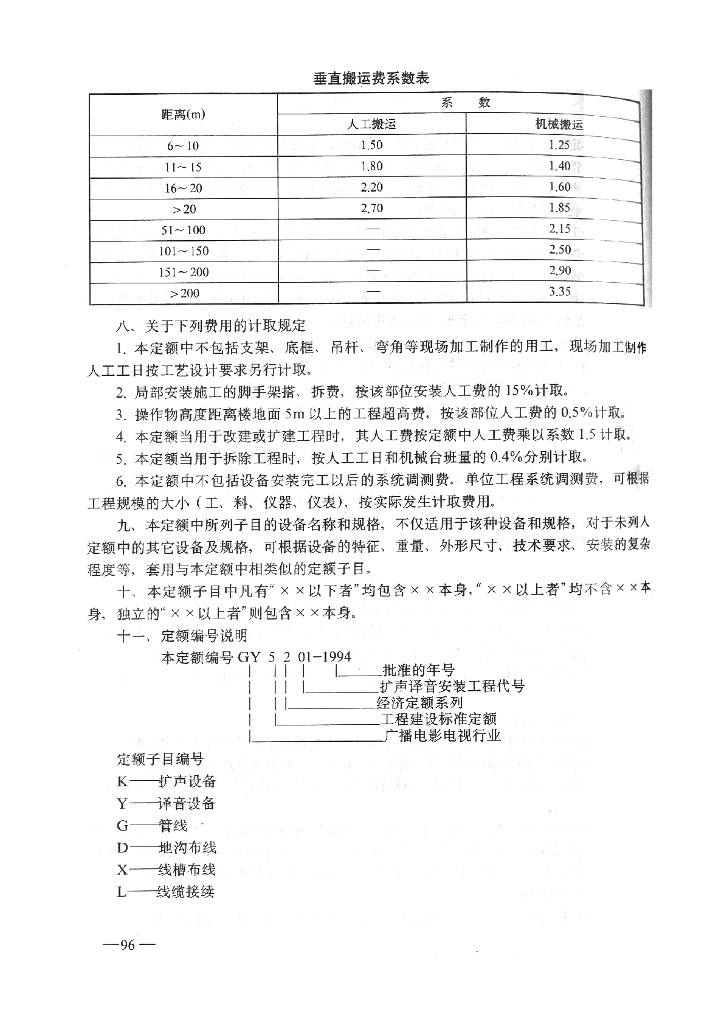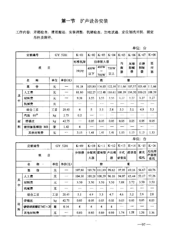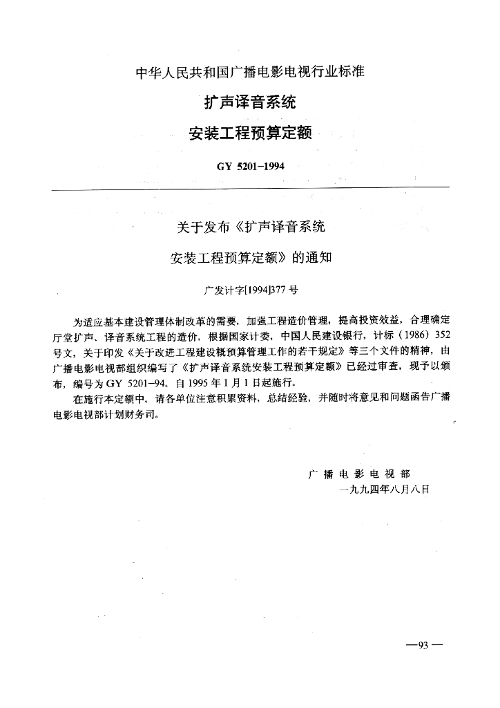GY 5201-1994 扩声译音系统安装工程预算定额