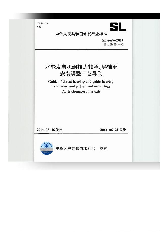 SL/T 668-2014 水轮发电机组推力轴承、导轴承安装调整工艺导则(附条文说明)(扫描版)