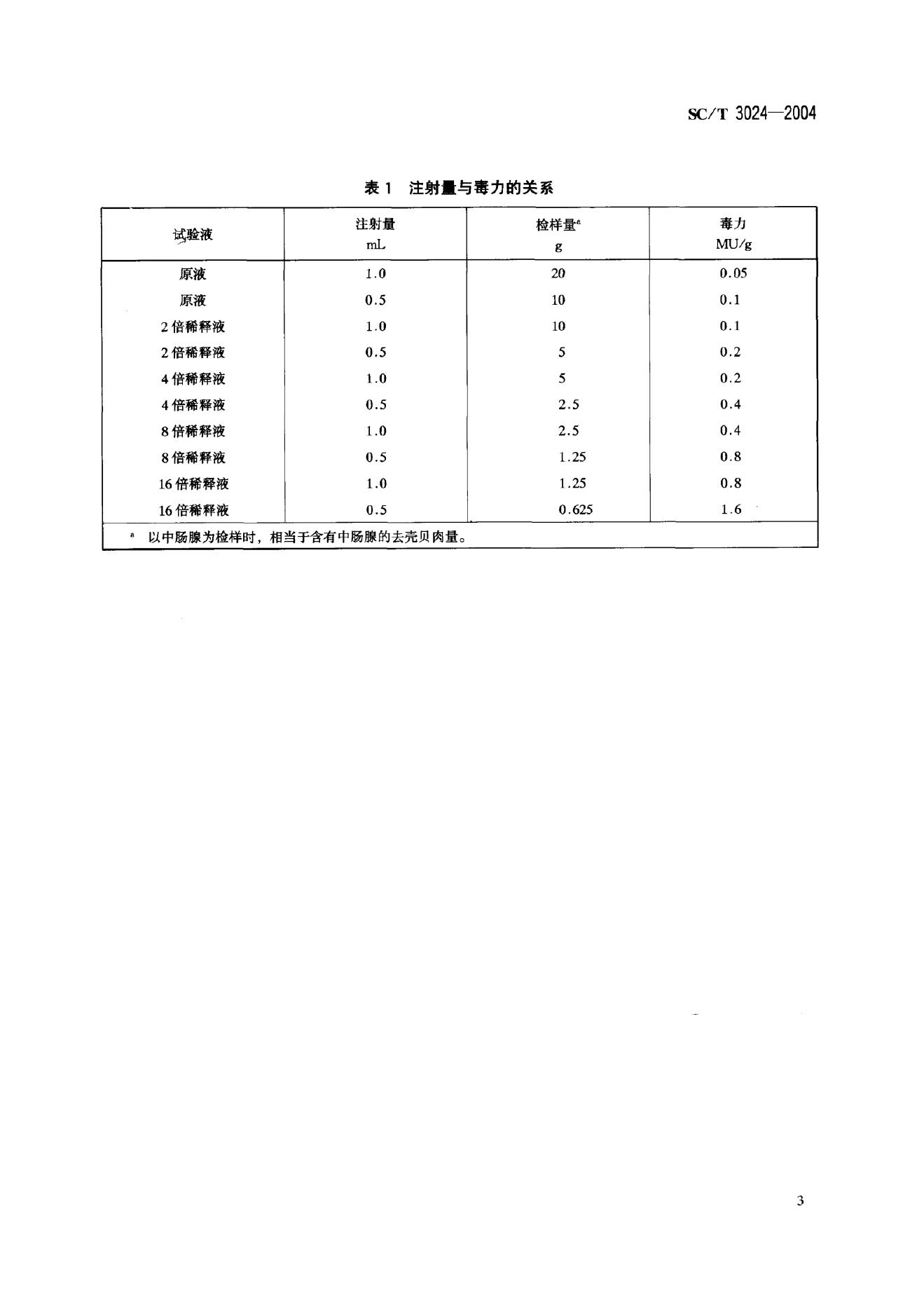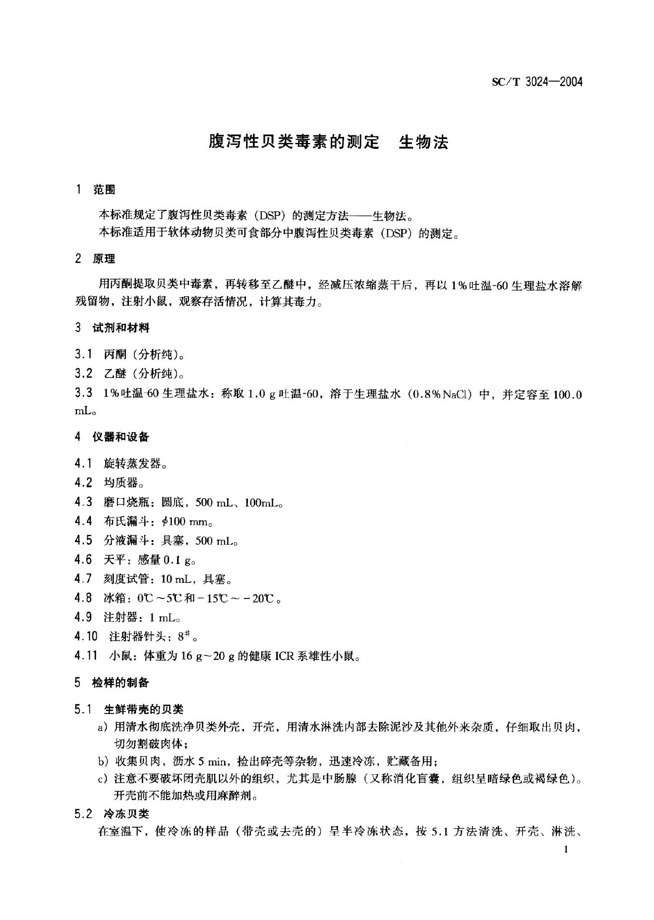 SC/T 3024-2004 腹泻性贝类毒素的测定 生物法