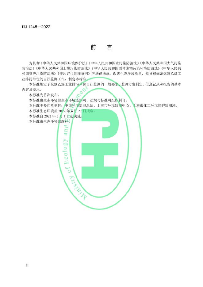 HJ 1245-2022 排污单位自行监测技术指南 聚氯乙烯工业