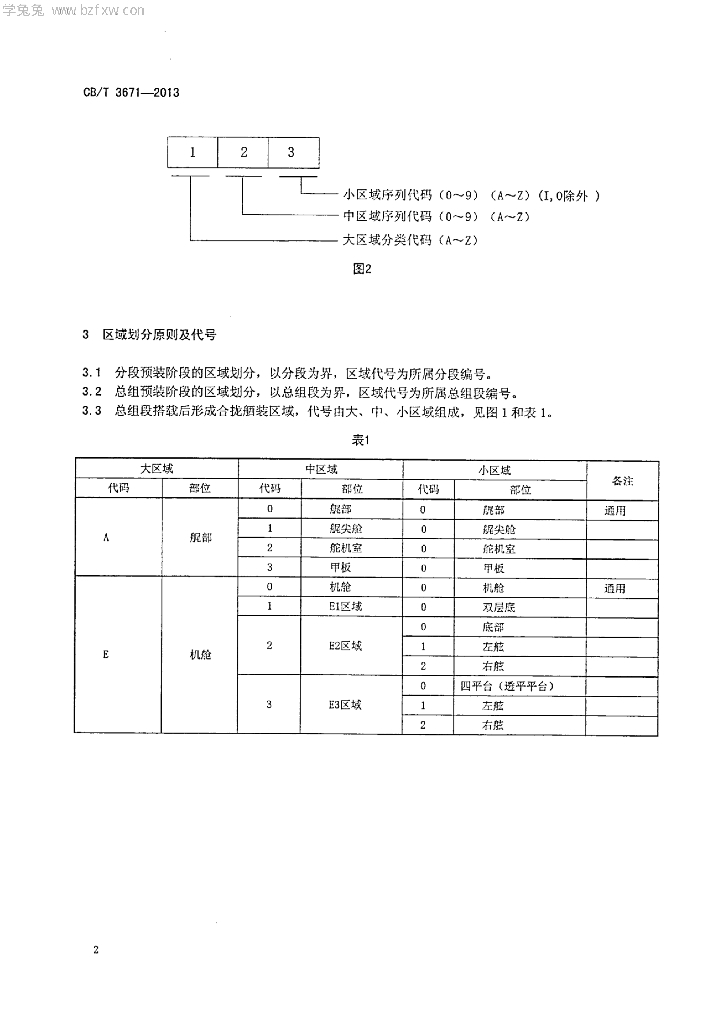 CB/T 3671-2013 船舶舾装区域划分原则及代号