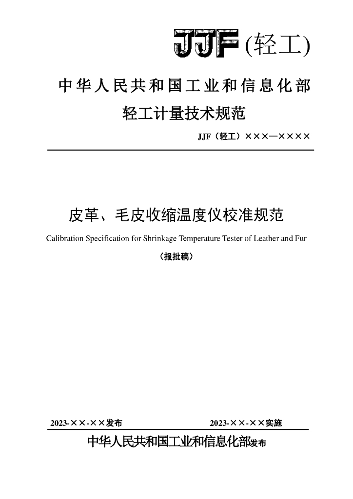 JJF(轻工)182-2023 皮革、毛皮收缩温度仪校准规范(报批稿)