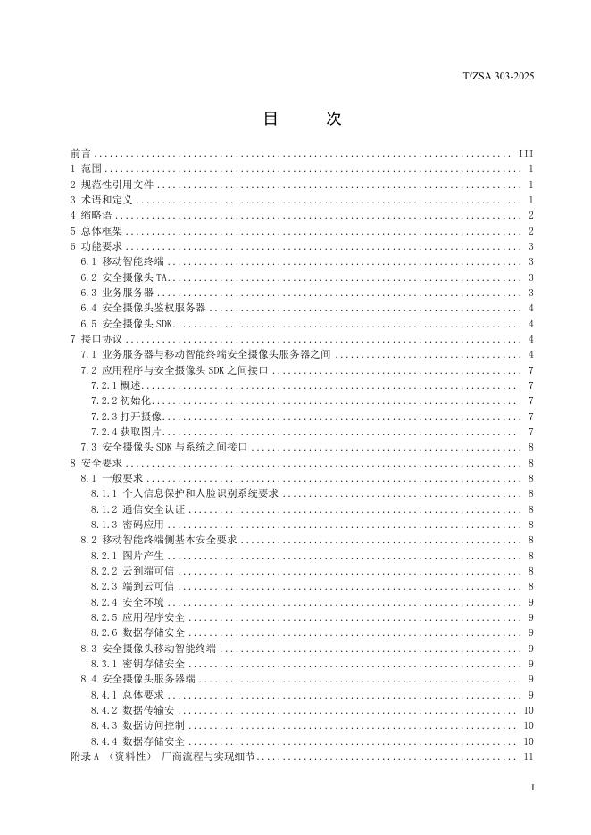 T/ZSA 303-2025 移动智能终端安全摄像头系统技术要求