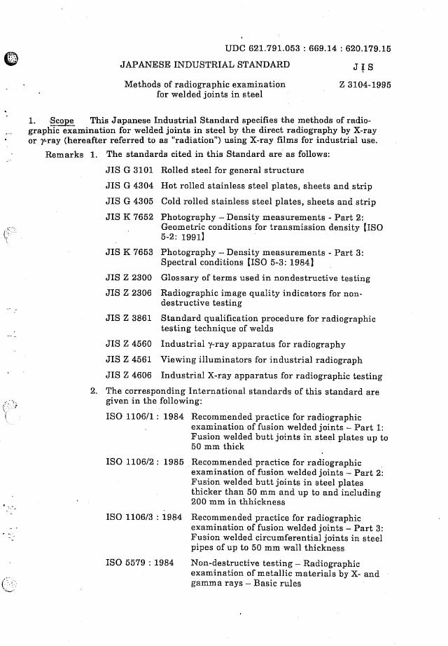 JIS Z3104-1995 钢焊接接点的X射线照相检测方法(英文版)