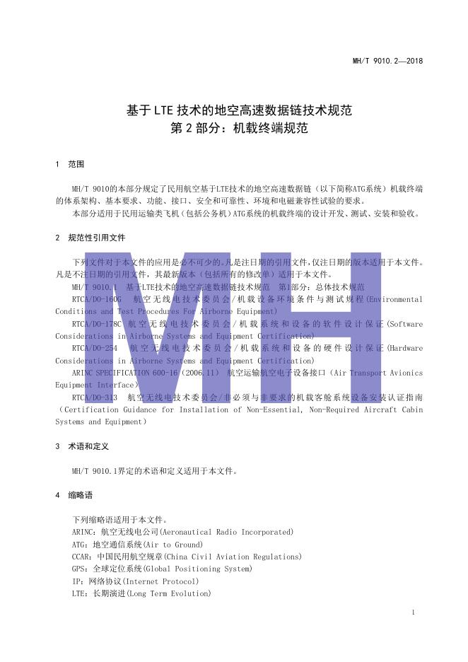 MH/T 9010.2-2018 基于LET技术的地空高速数据链技术规范 第2部分:机载终端规范