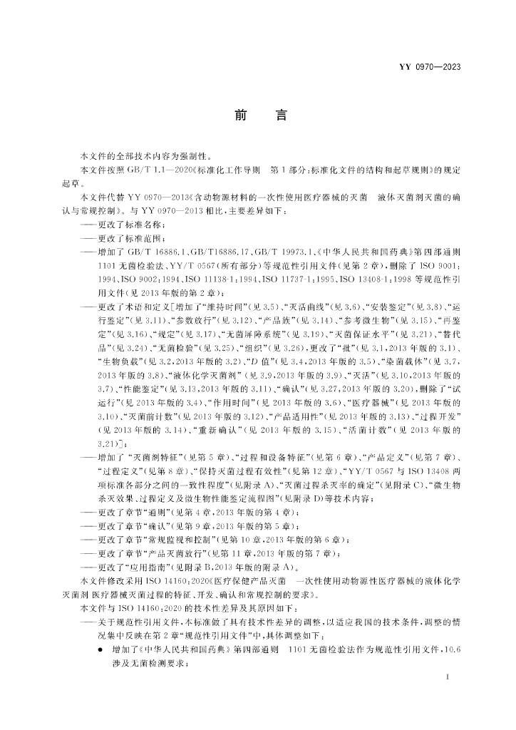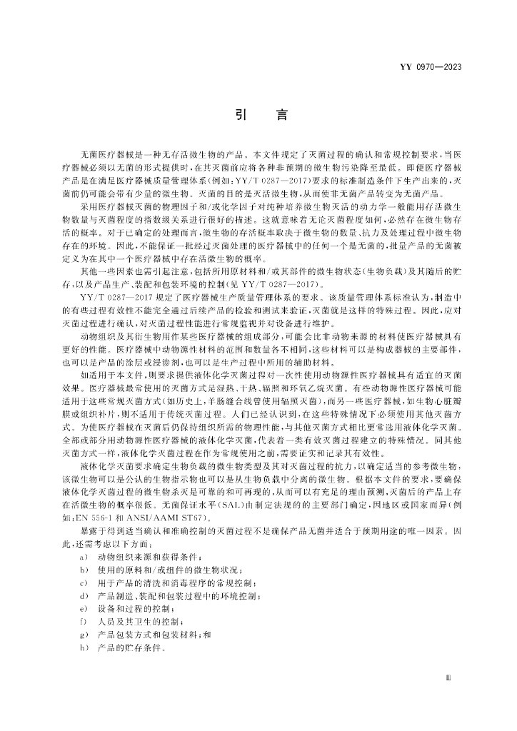 YY 0970-2023 医疗保健产品灭菌 一次性使用动物源性医疗器械的液体化学灭菌剂 医疗器械灭菌过程的特征、开发、确认和常规控制的要求