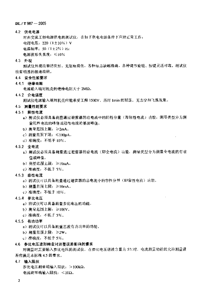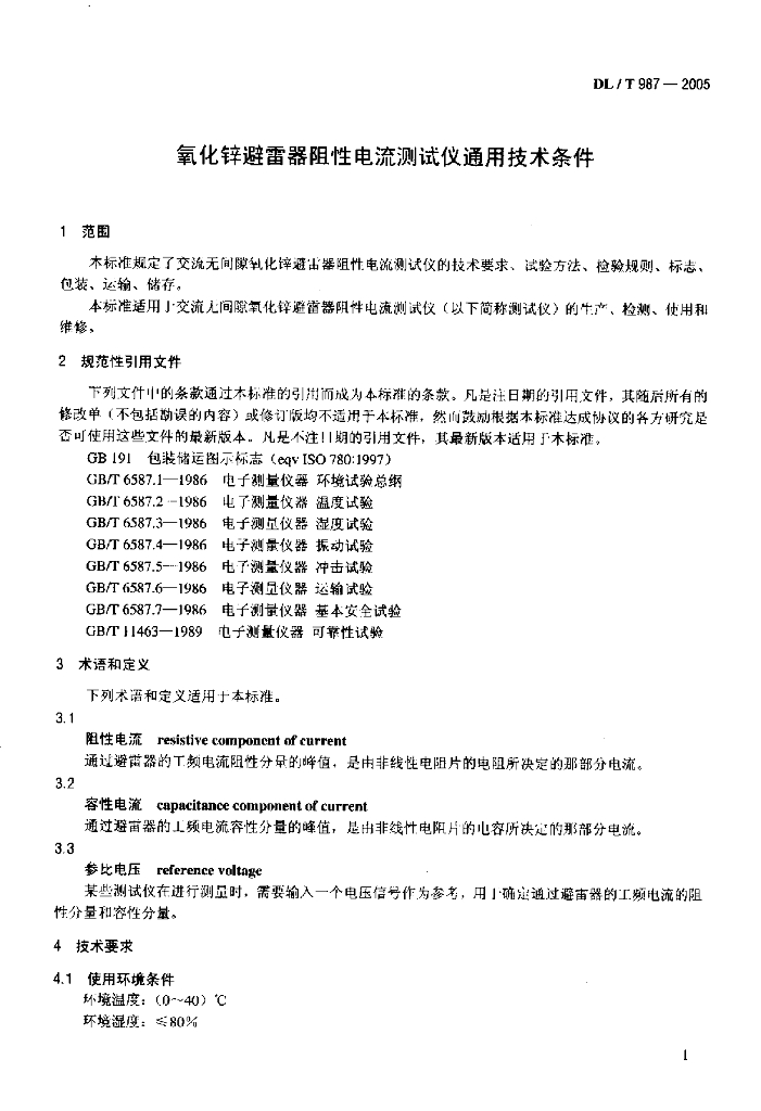 DL/T 987-2005 氧化锌避雷器阻性电流测试仪通用技术条件